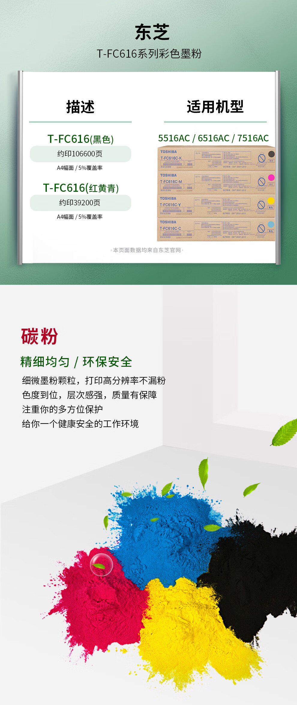 东芝(TOSHIBA) T-FC616CC 打印量约39200页 适用于eS5516AC/6516AC/7516AC 碳粉桶 (计价单位:只) 青色