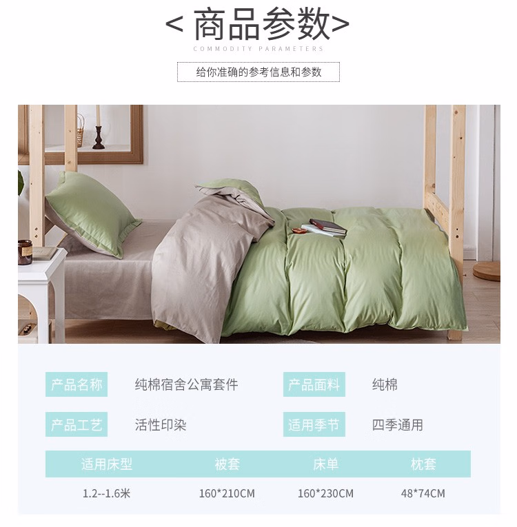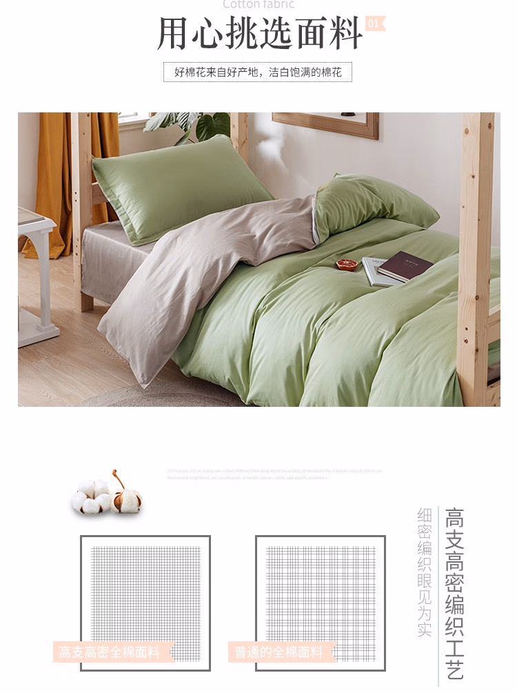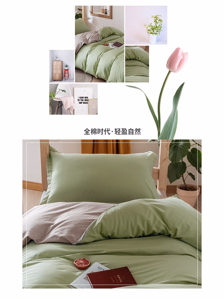 伊伊爱 TB2000245 160*210cm 纯棉纯色 床上三件套 (计价单位:套) 抹茶卡其