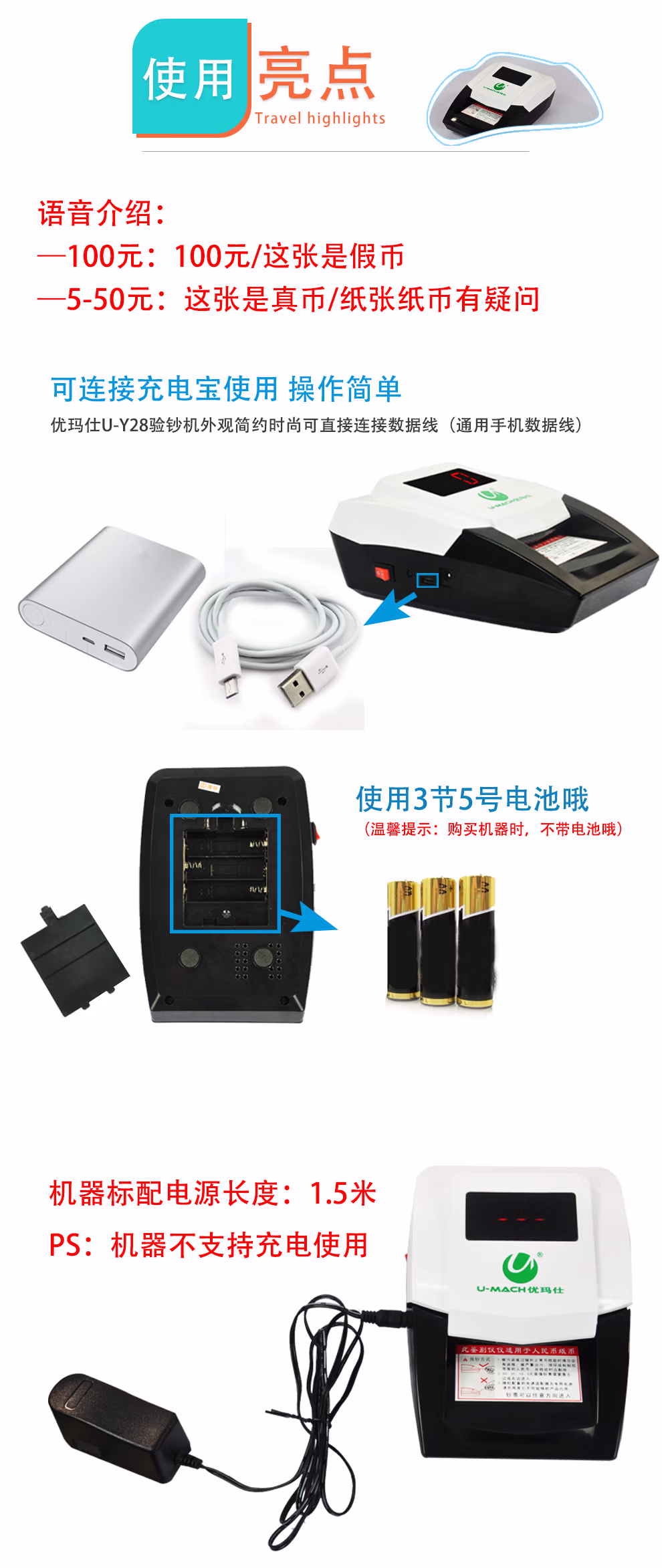 优玛仕(U-MACH) U-2012 小 型便携 智能 点验钞机 (计价单位:台) 白色