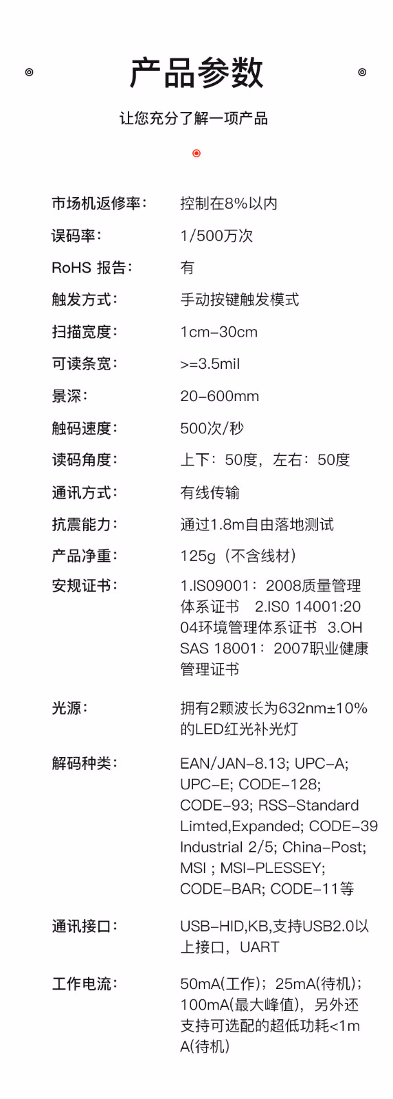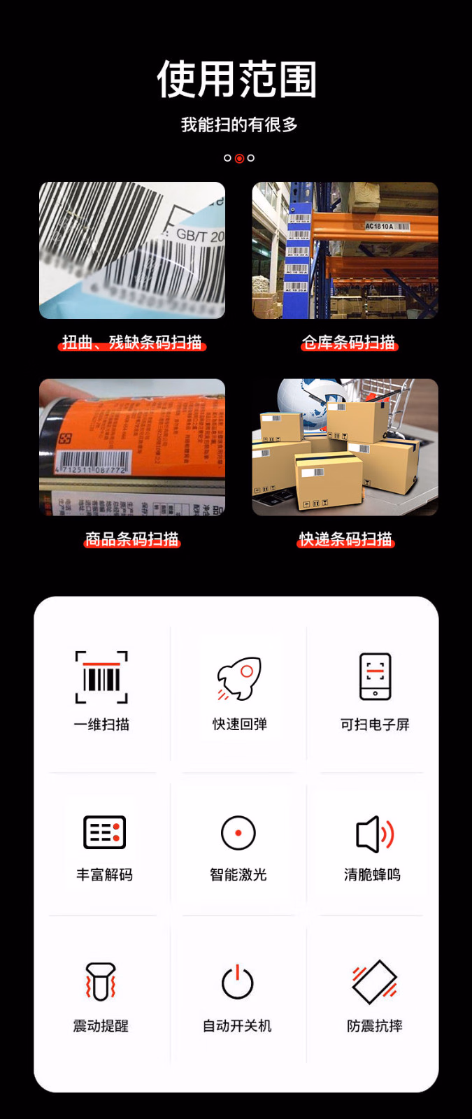 优玛仕(U-MACH) U-75CCD 一维码隔屏幕扫描枪 (计价单位:台) 黑