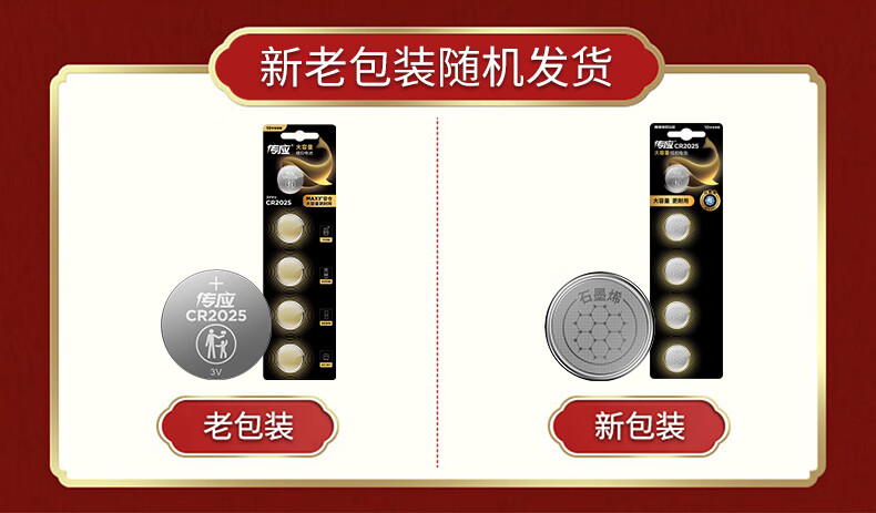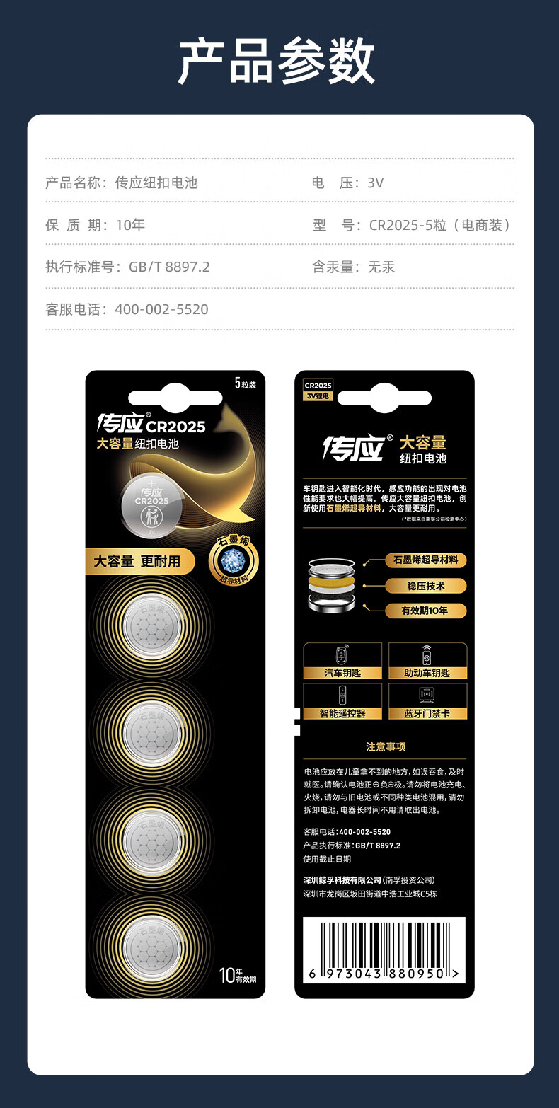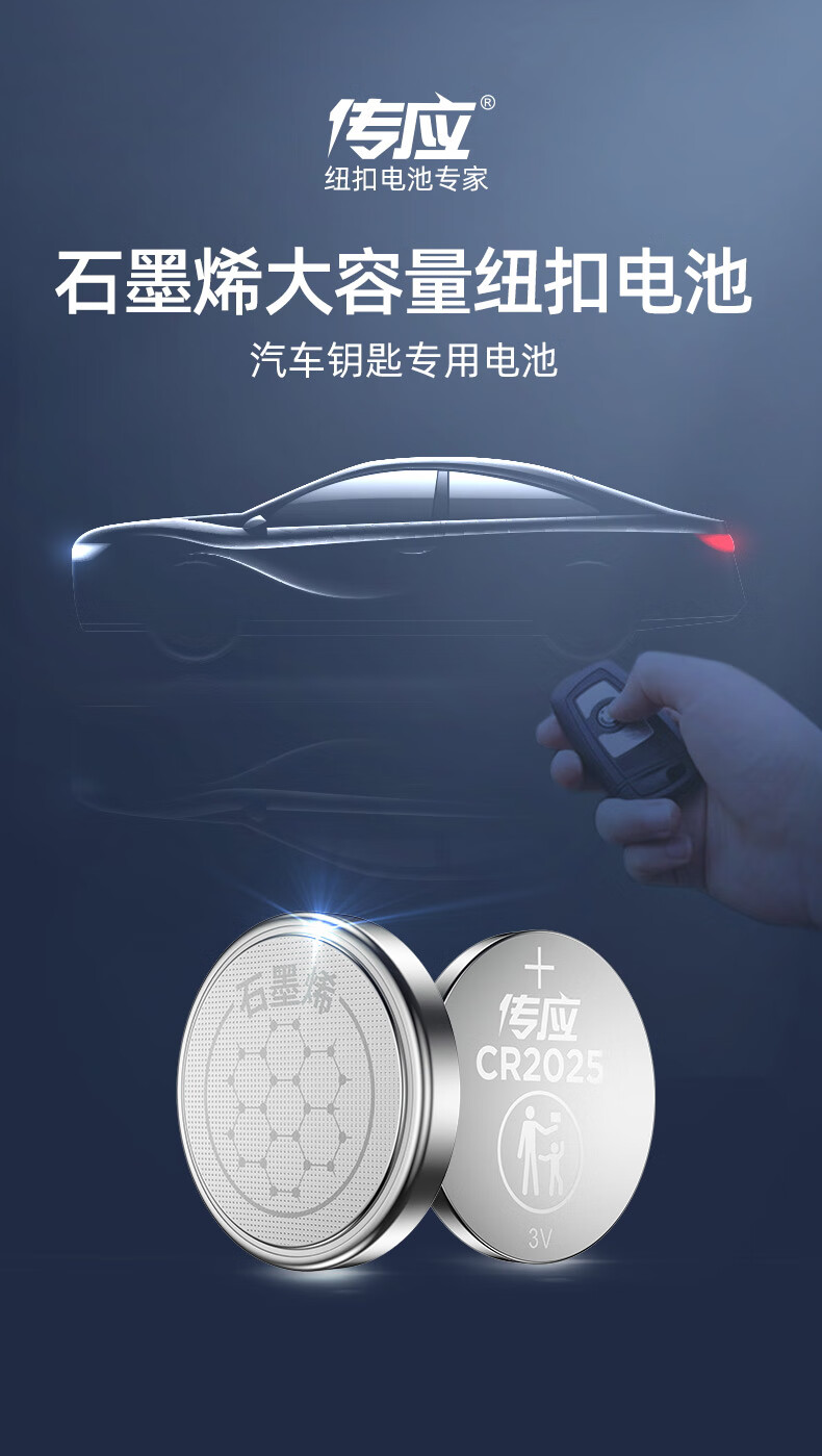 南孚传应 石墨烯CR2025纽扣电池5粒3V锂电池适用大众奔驰比亚迪等汽车钥匙手表遥控器手表血糖仪等cr2025 单位:卡