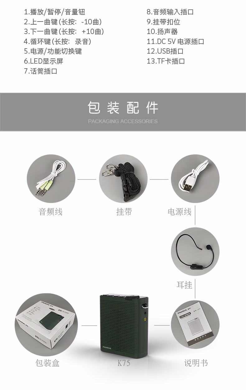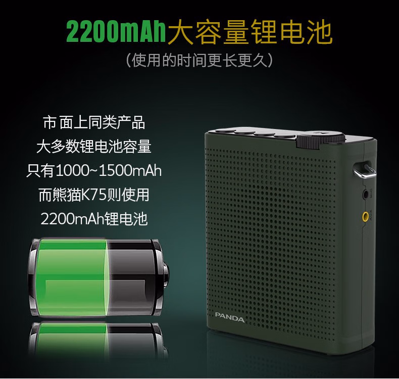 • 商品名称:熊猫 K75小蜜蜂扩音器教师专用扬声器户外唱戏机随身便携喊话器喇叭充电导游讲解广场舞播放器无线教学 K75绿色标配