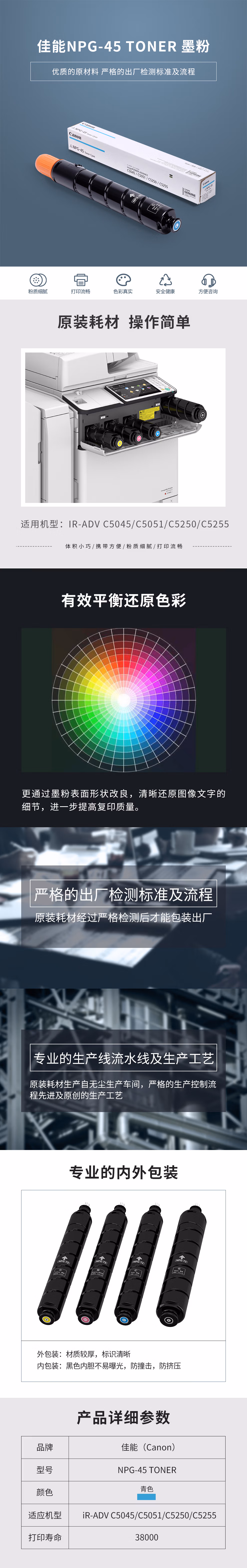 佳能(Canon) NPG-45C 38000页 适用复合机iR-ADV C5045 5051 墨粉盒 1.00 只/支 (计价单位:支) 青色