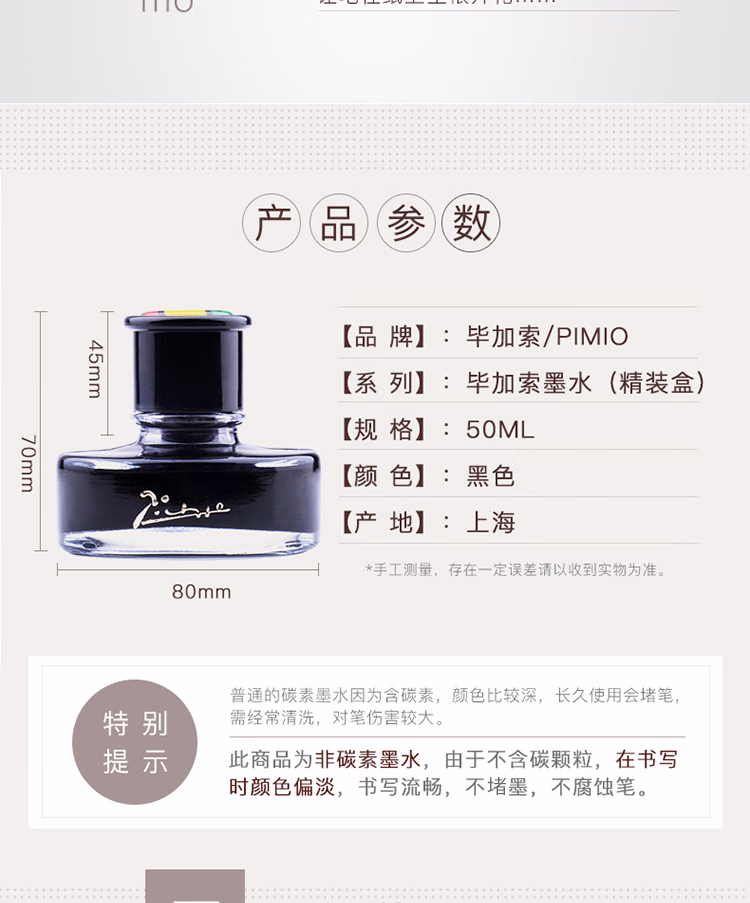 毕加索(pimio) 50ML/瓶 非碳素染料型 精装钢笔墨水 1.00 盒/瓶 (计价单位:瓶) 黑色