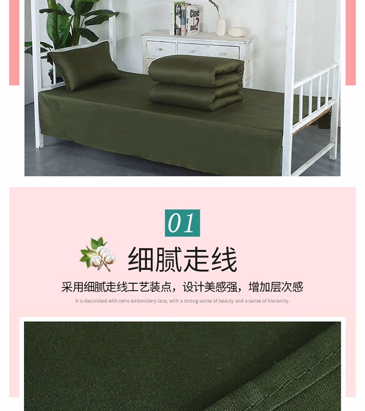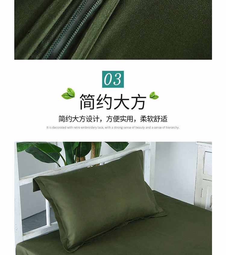 • 商品名称:Tri-polar21纱支军绿色六件套 床品套件 TP2983 六件套 热熔棉被芯+热熔棉褥子芯 褥子1.2*2m