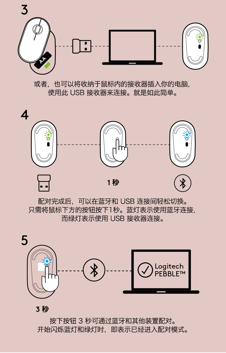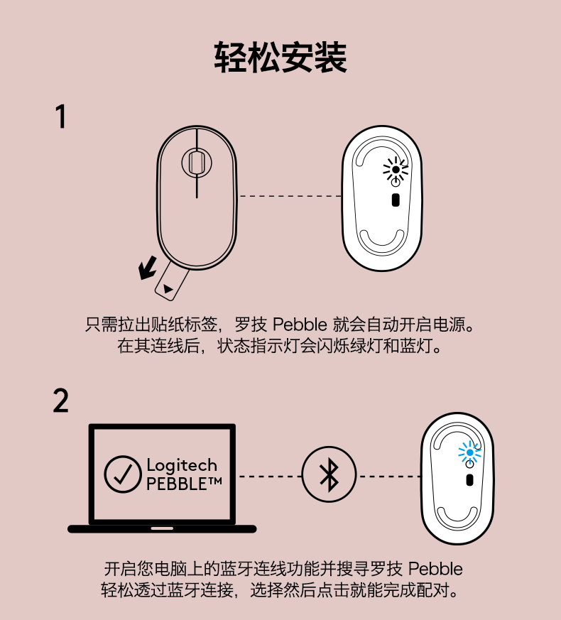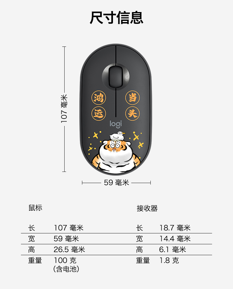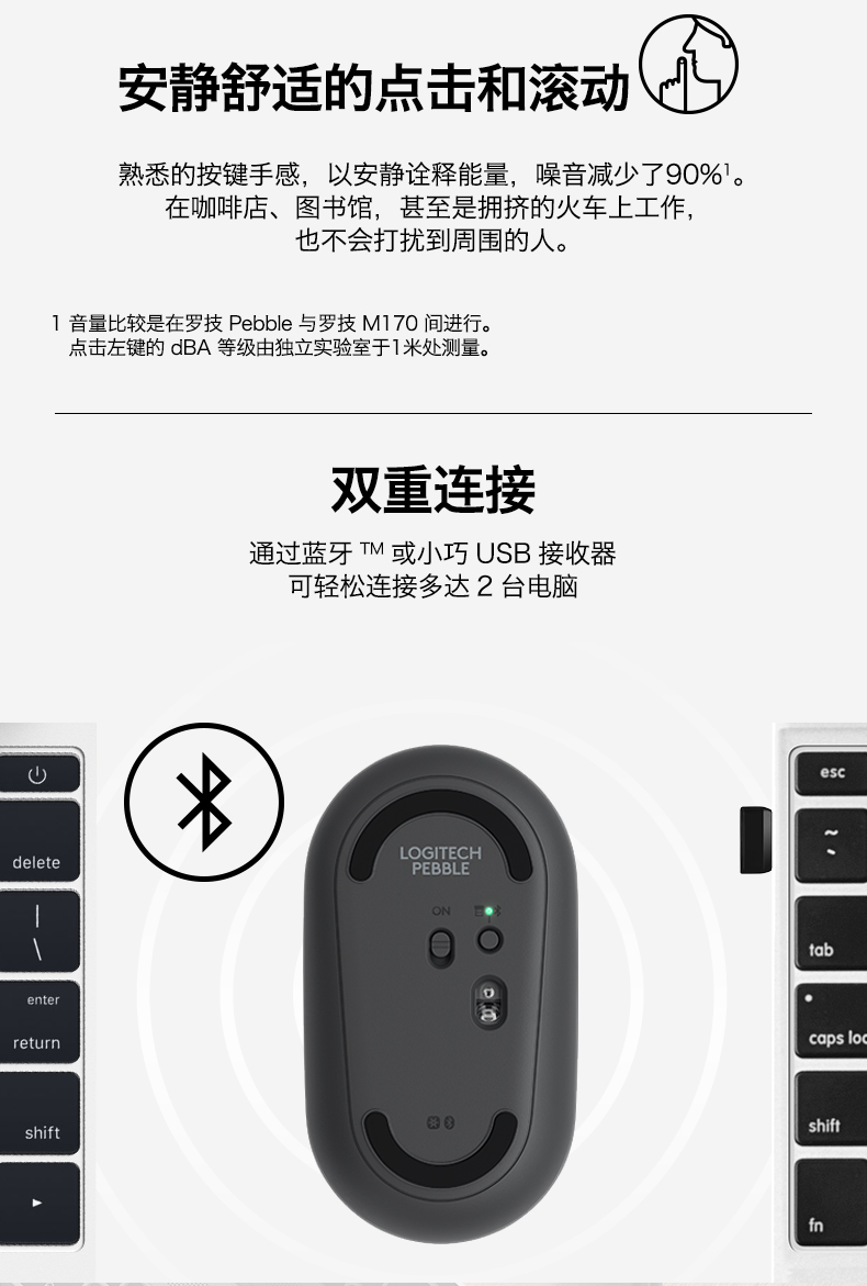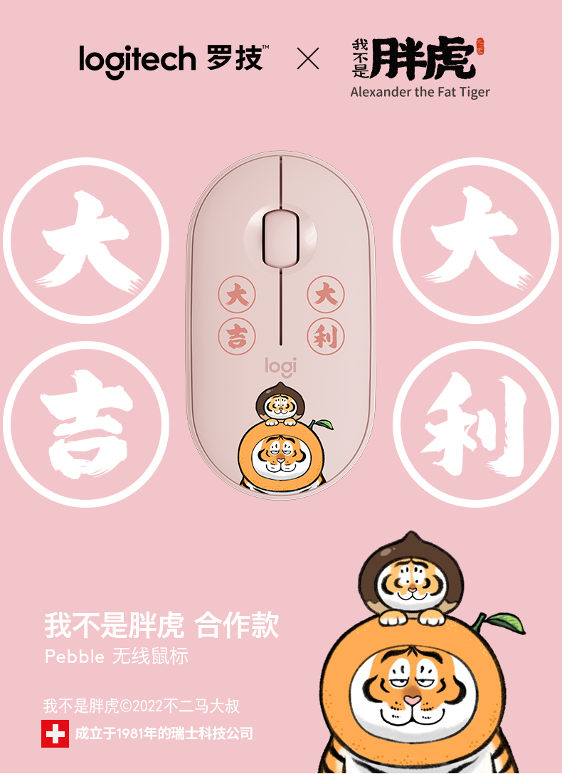 罗技(Logitech) Pebble鹅卵石轻薄型轻音办公鼠标 蓝牙无线双模 时尚便携可爱 少女馆 Pebble胖虎黑+鼠标垫 单位:个