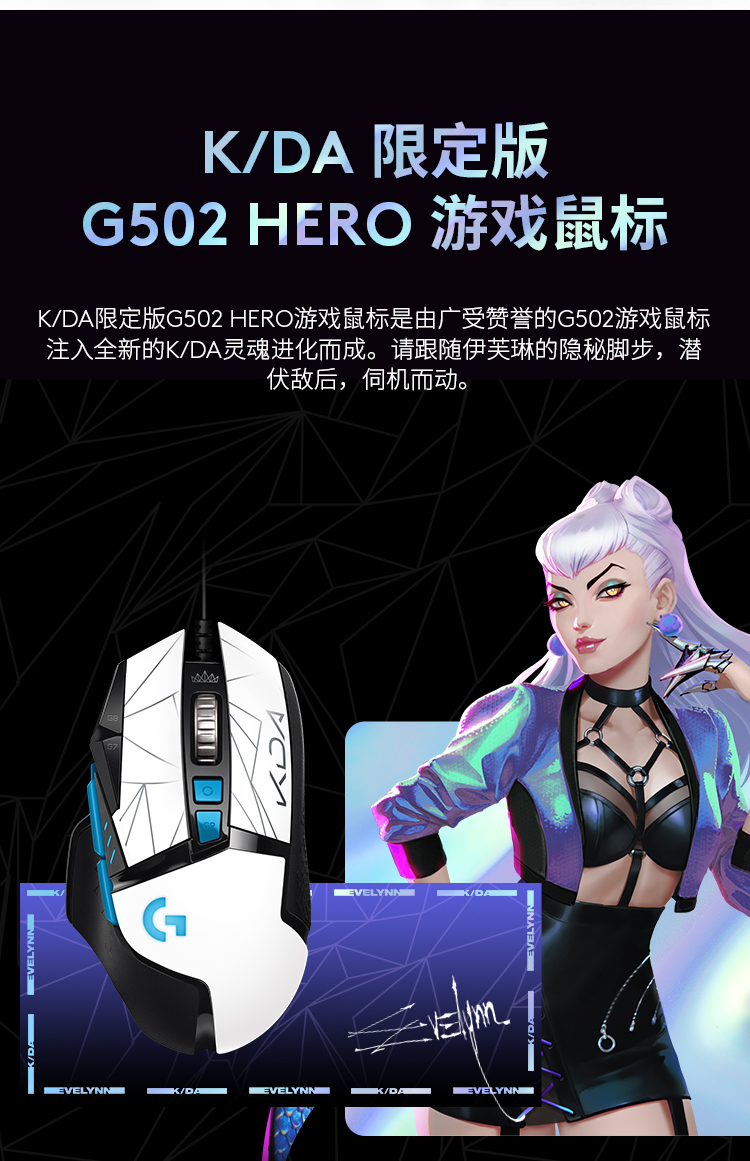 罗技(G) G502KDA英雄联盟女团限定版HERO引擎电竞游戏鼠标有线RGB灯光 G502 SE+大桌垫 单位:个