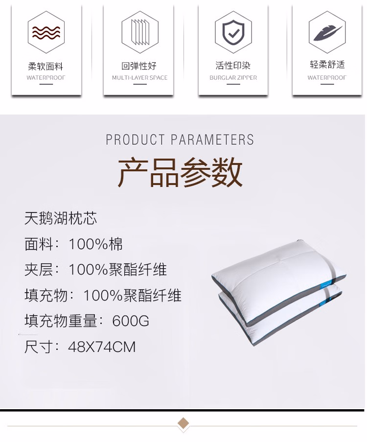 • 商品名称:伊伊爱 ZX-9YSR-001 全棉天鹅湖中枕单人枕芯白色(单位:个) 白色 48*74cm