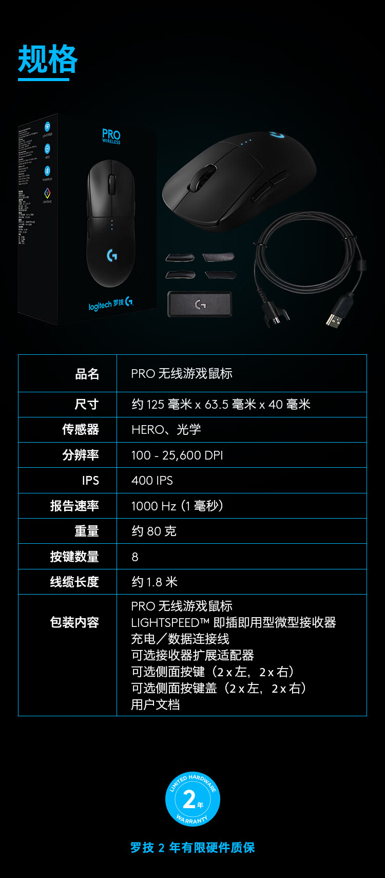 罗技(G) PRO WIRELESS无线鼠标GPW2代轻量化宏CF GPW一代 海克斯鼠标 单位:个