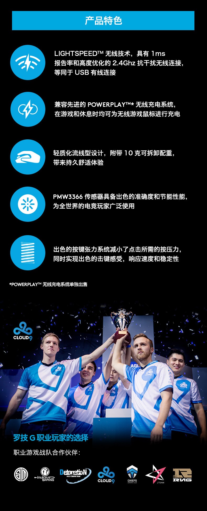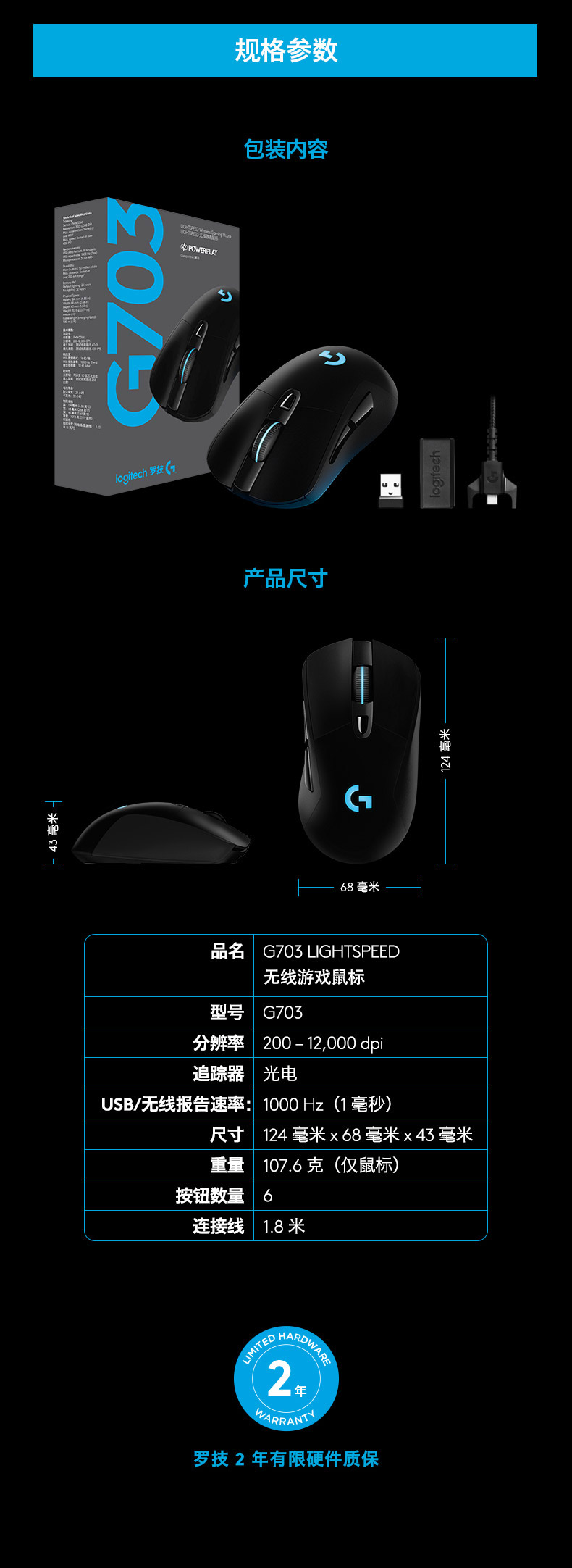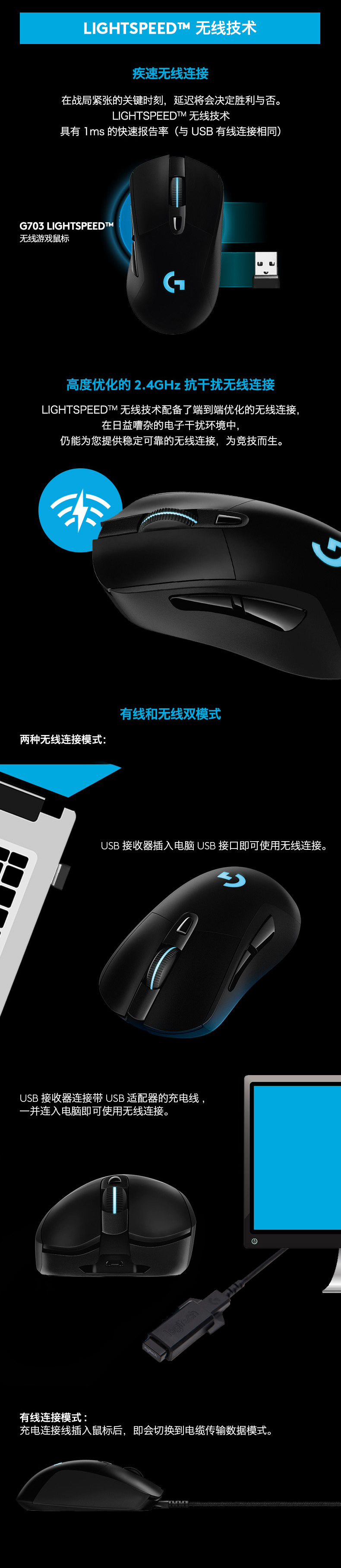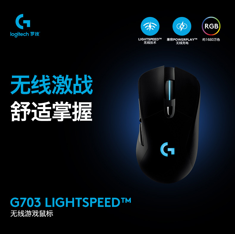 罗技(G) G703 HERO无线鼠标电竞竞技RGB宏编程鼠标 G703 HERO+POWERPLAY 单位:个