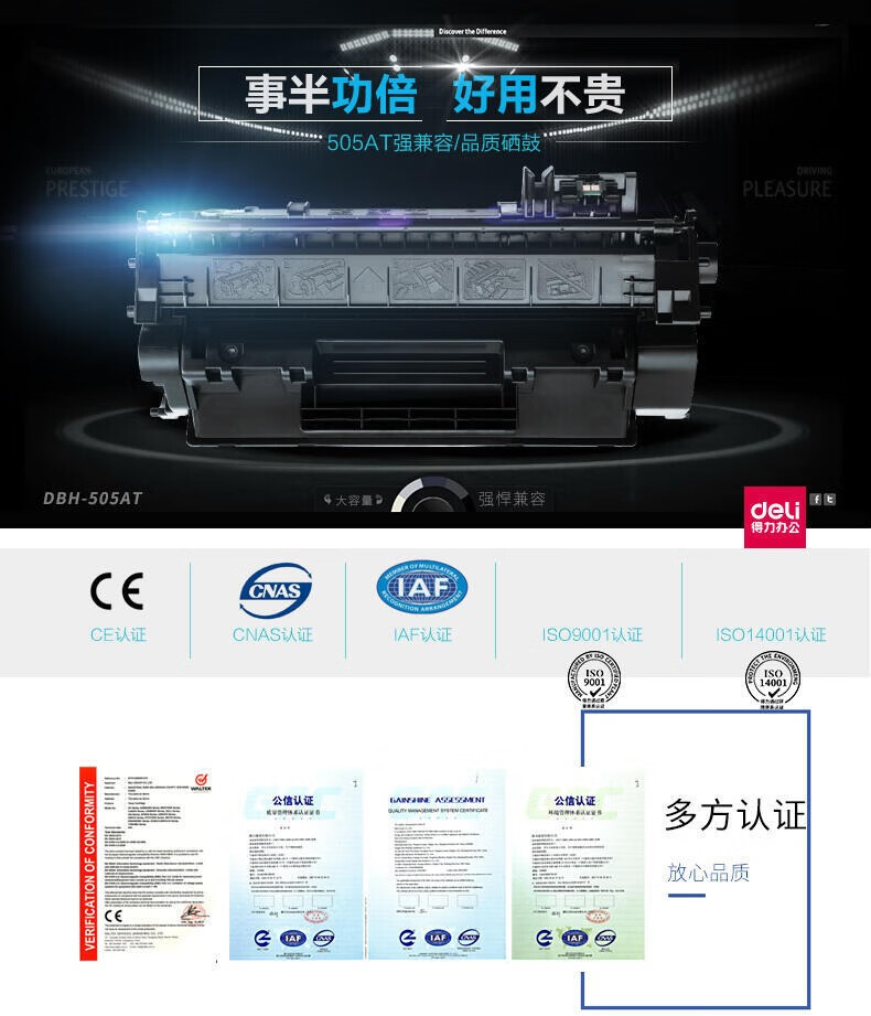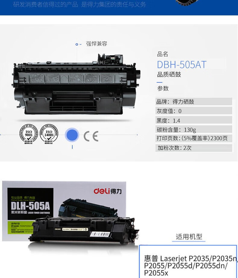 得力(deli) DBH-505AT 打印量2300页 适用惠普HP P2035/P2035n/P2055 激光碳粉盒 1.00 只/支 (计价单位:支) 黑色