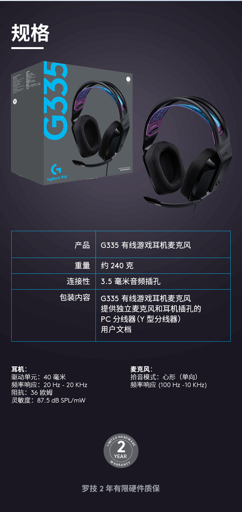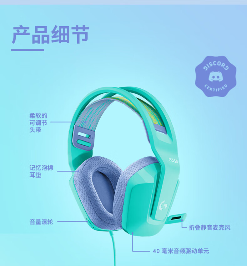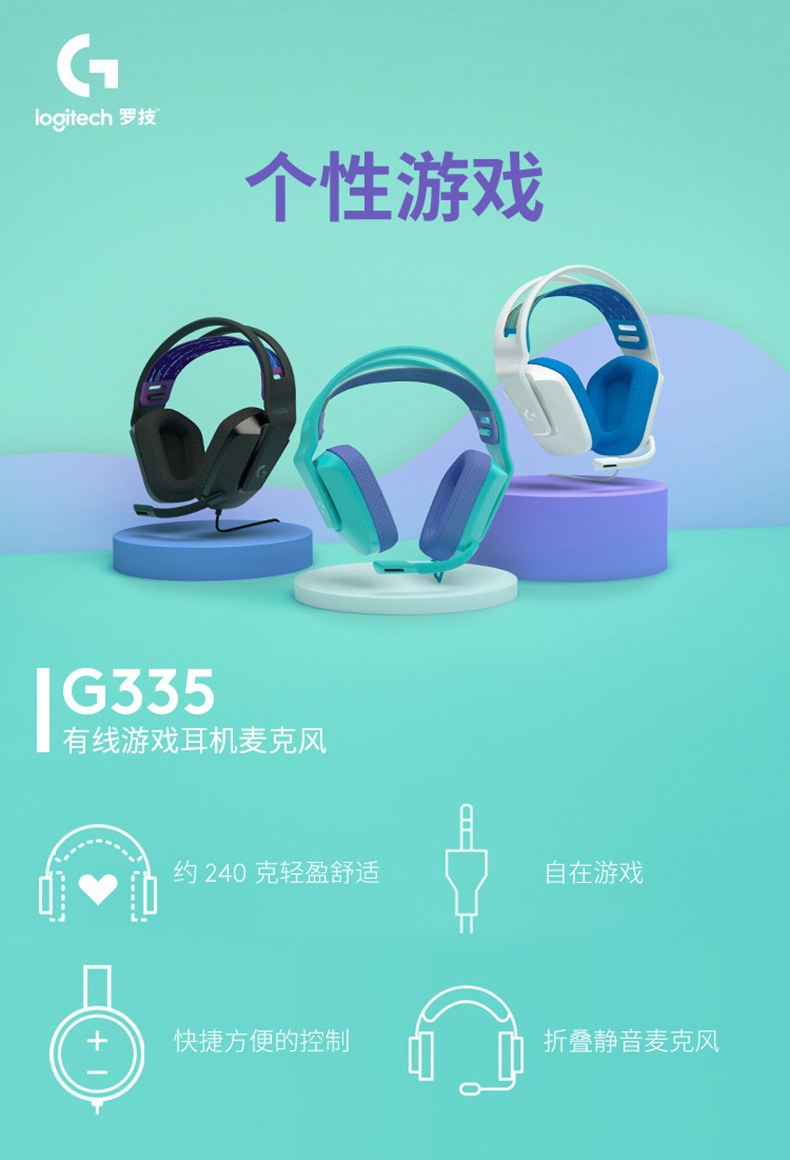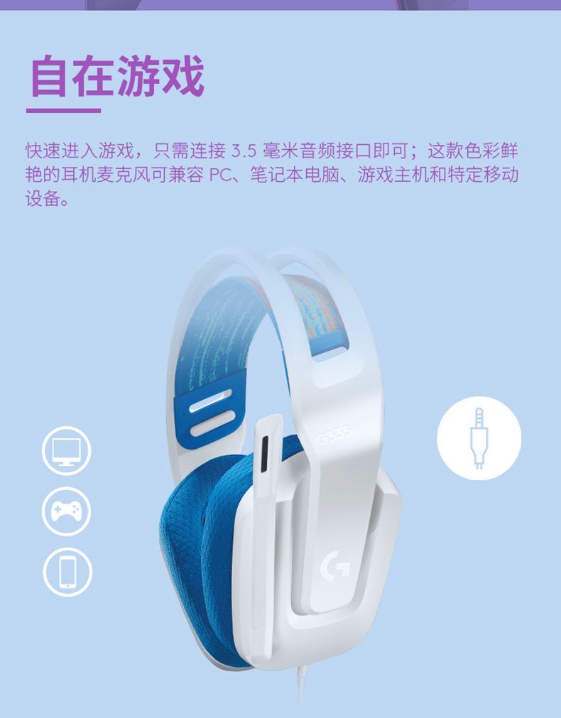 罗技(G) G335耳机头戴式有线电脑耳麦带麦立体声LOLcsgo G335白色