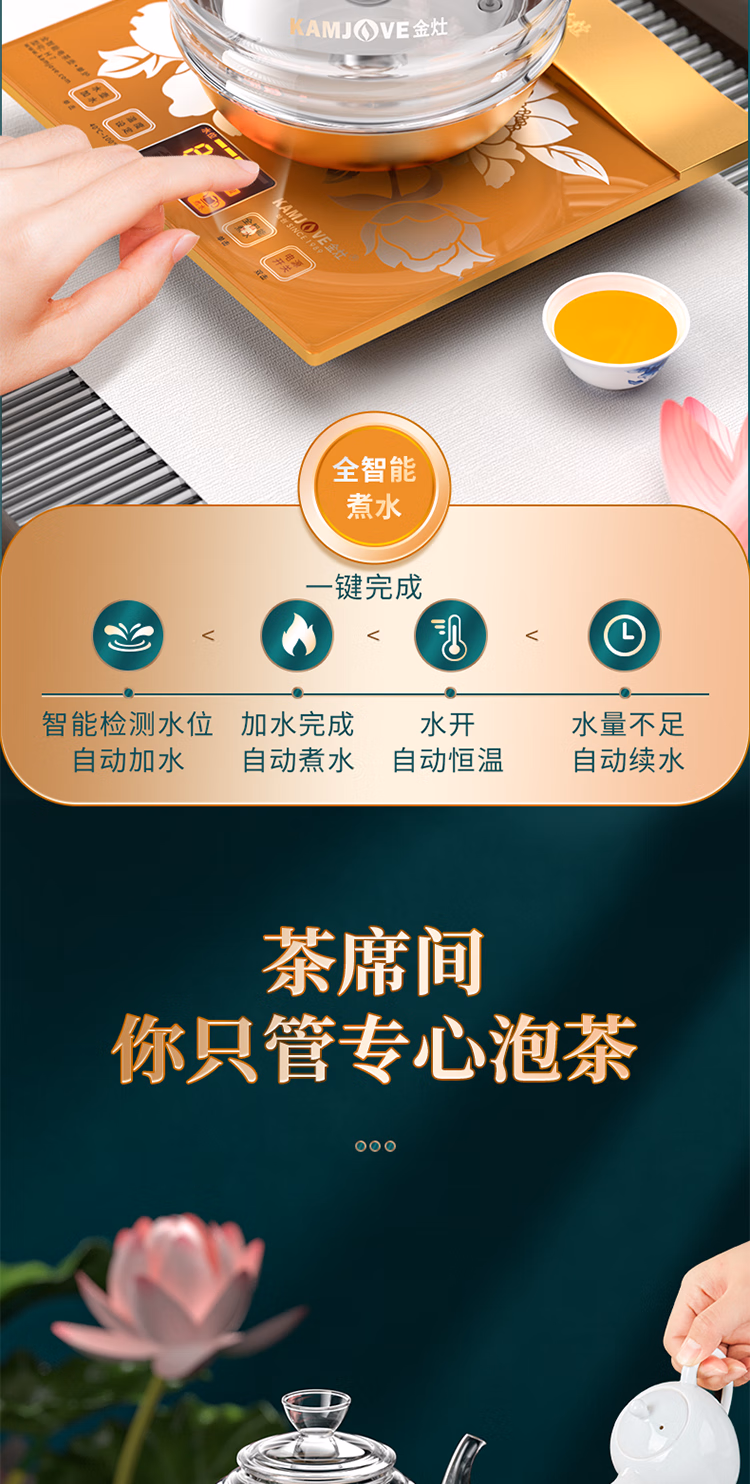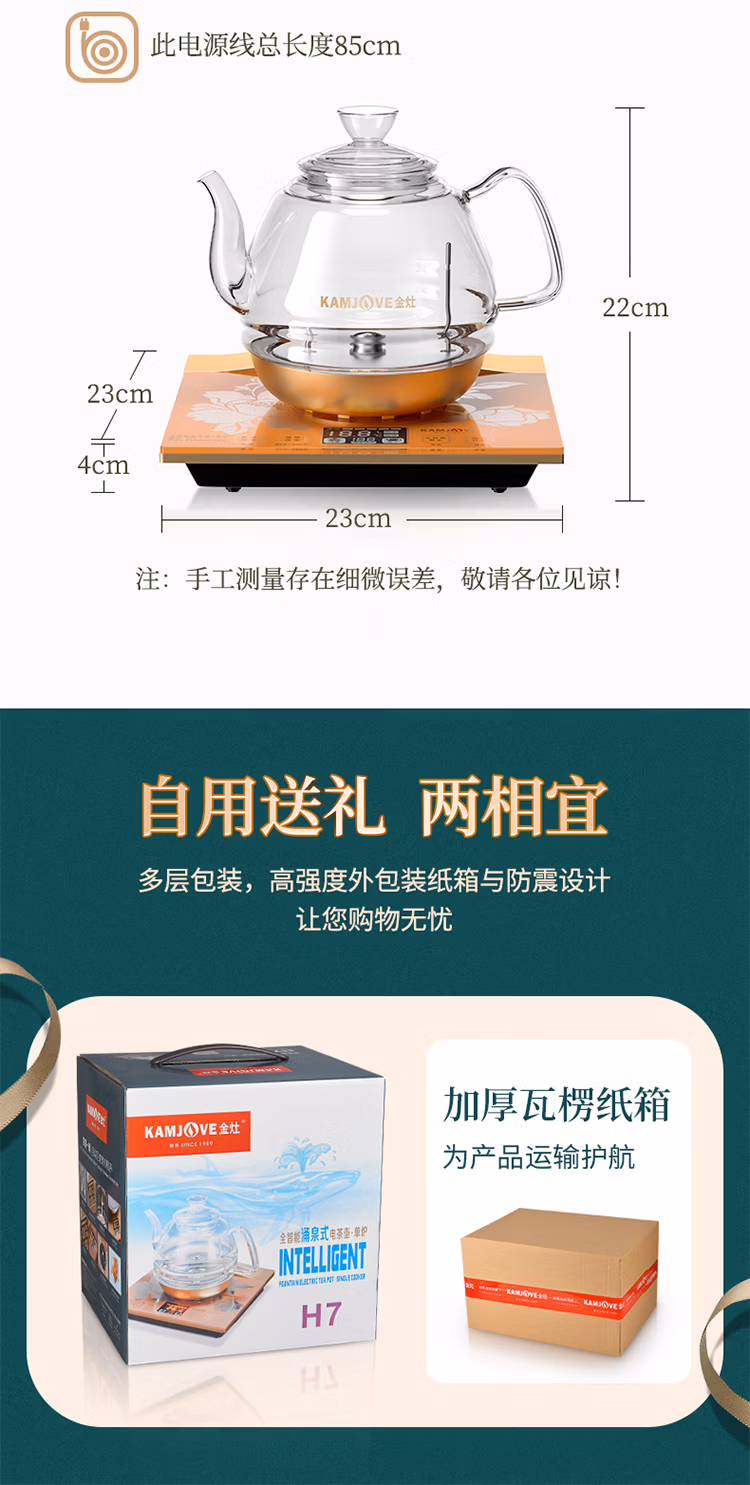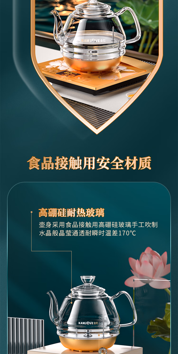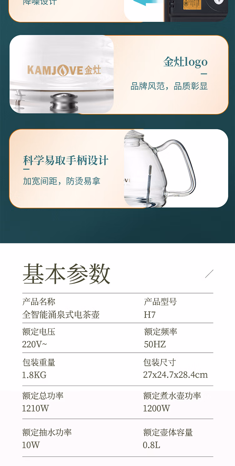 金灶(KAMJOVE) H7 0.8L 涌泉式 自动上水 玻璃 电热水壶 (计价单位:台) 香槟金色