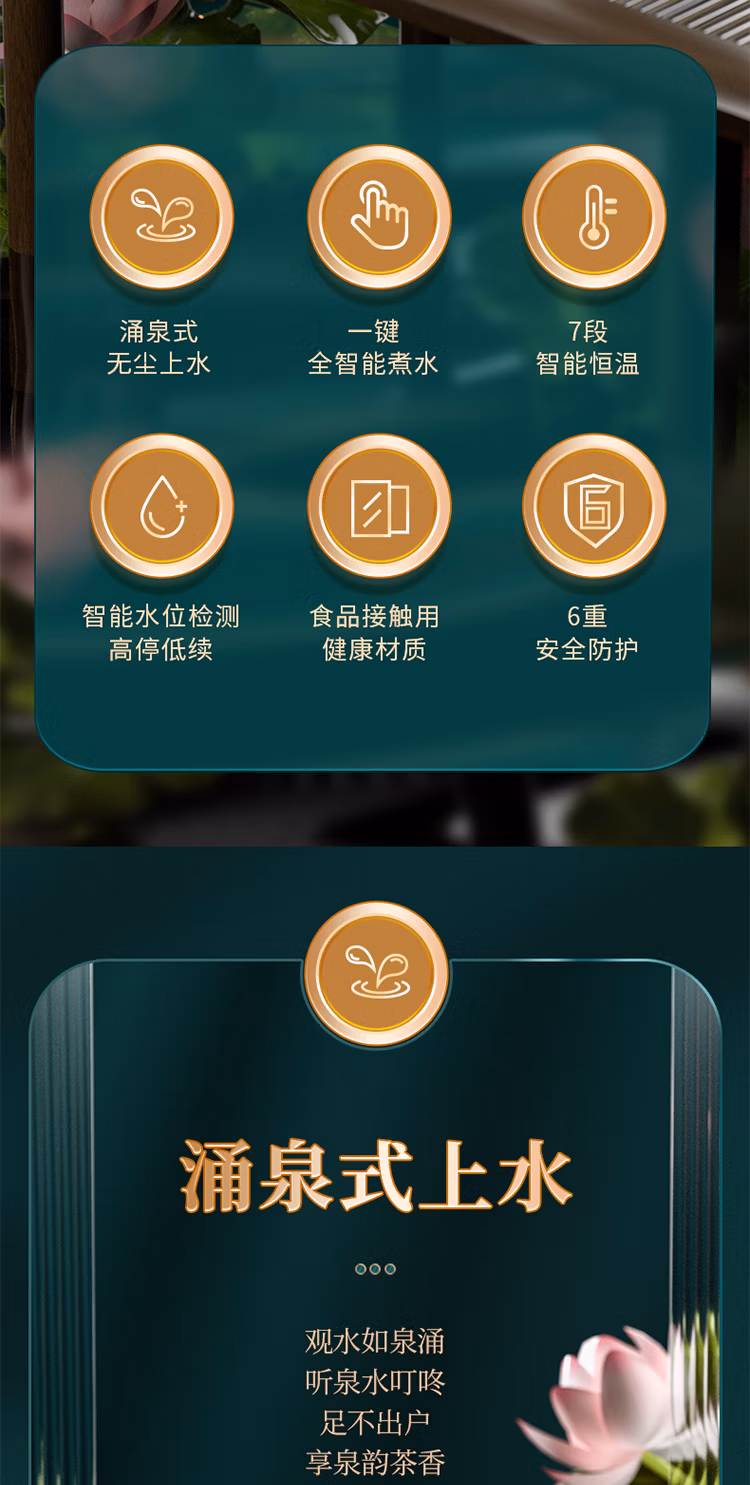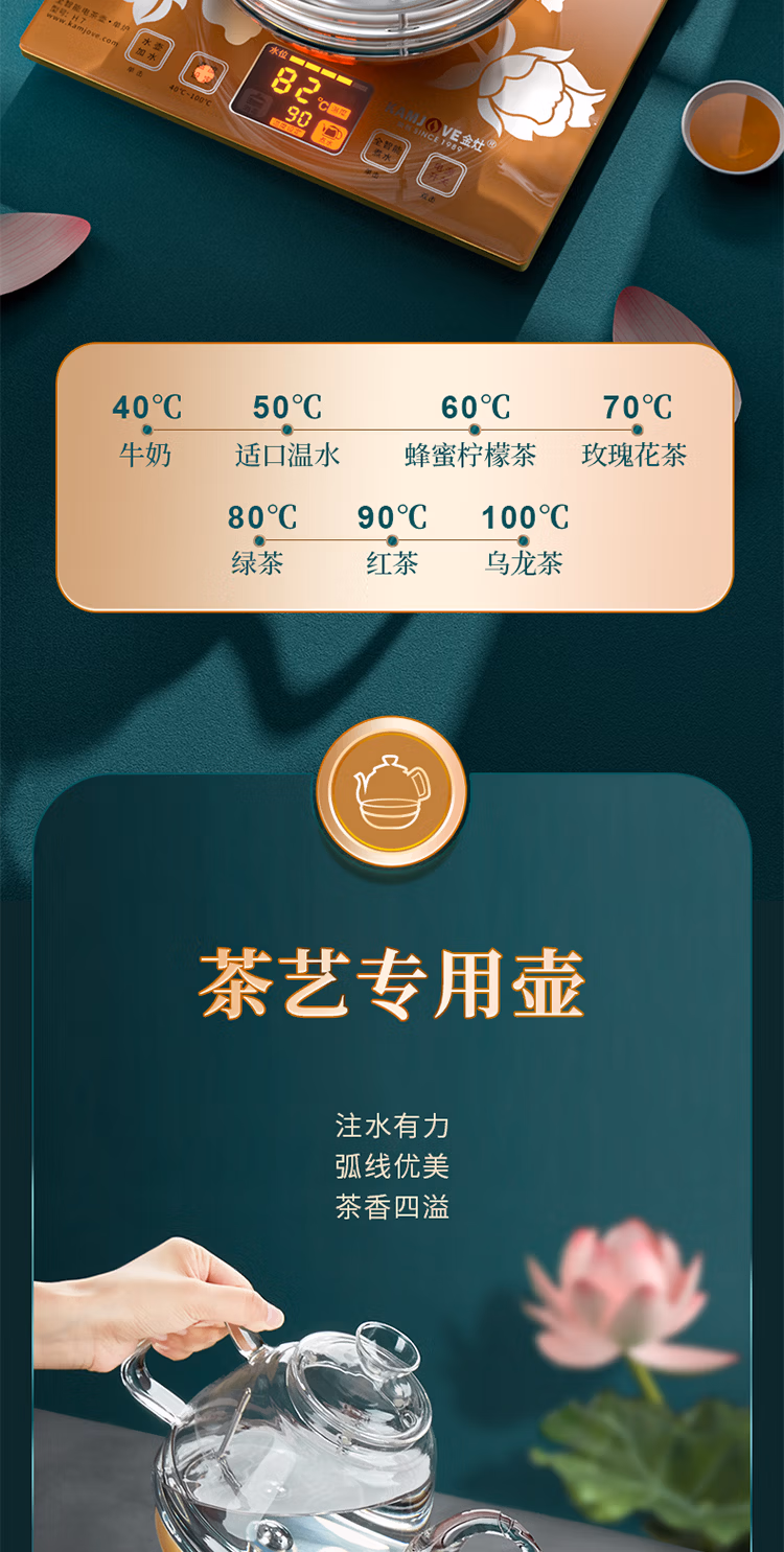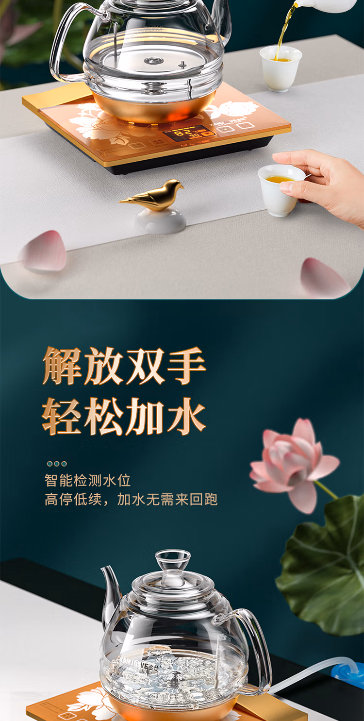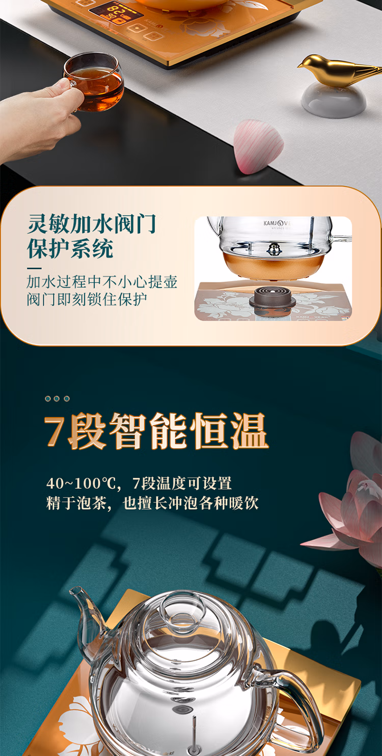 金灶(KAMJOVE) H7 0.8L 涌泉式 自动上水 玻璃 电热水壶 (计价单位:台) 香槟金色