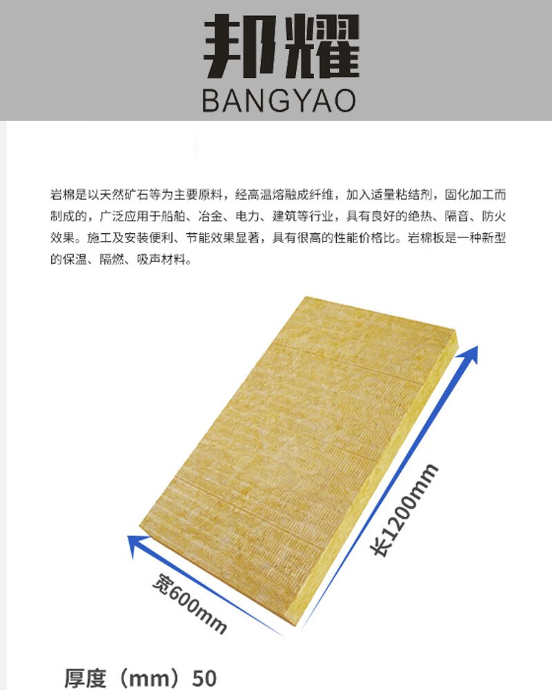 邦耀 岩棉板 外墙幕墙保温隔热材料防火 金属屋面 岩棉板 80k50mm厚1.2*0.6 *6片