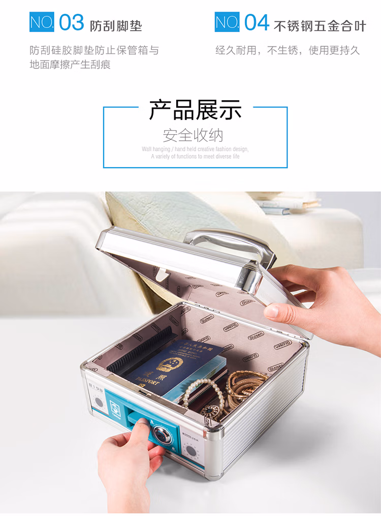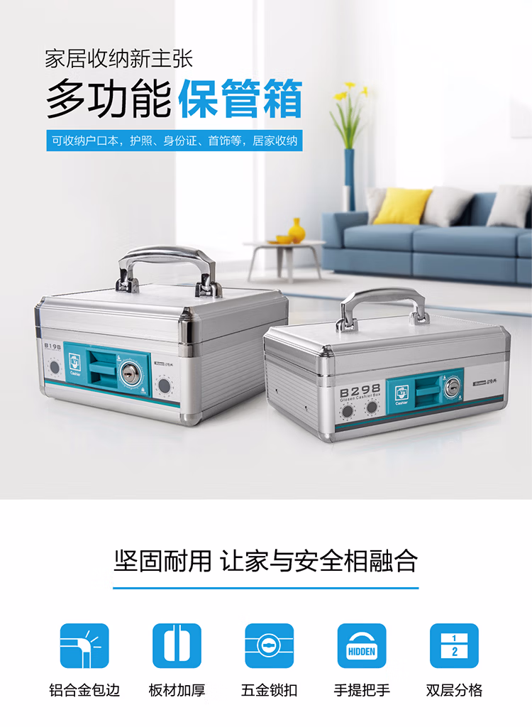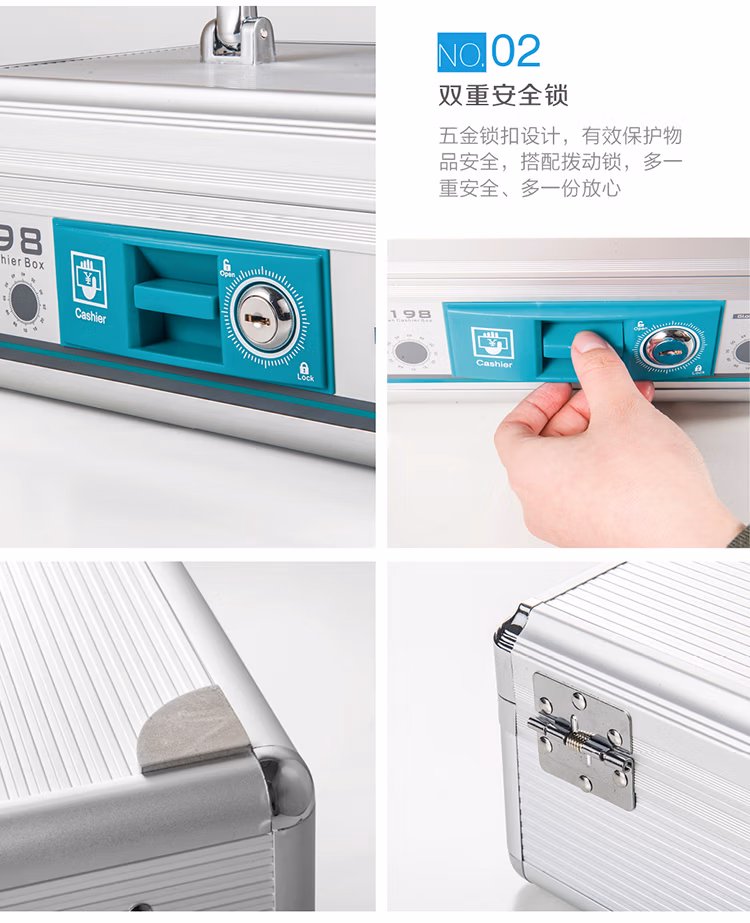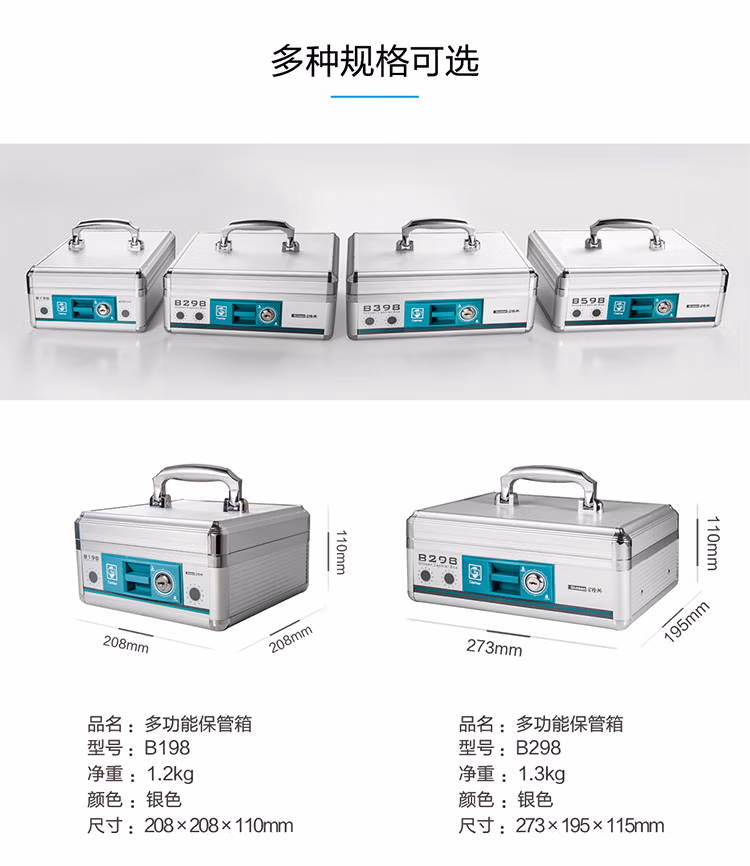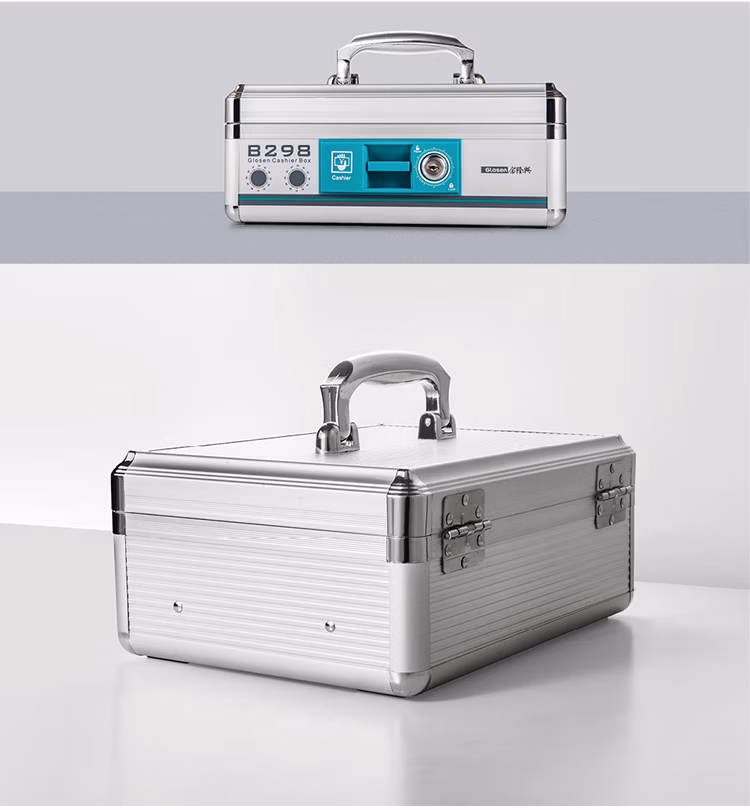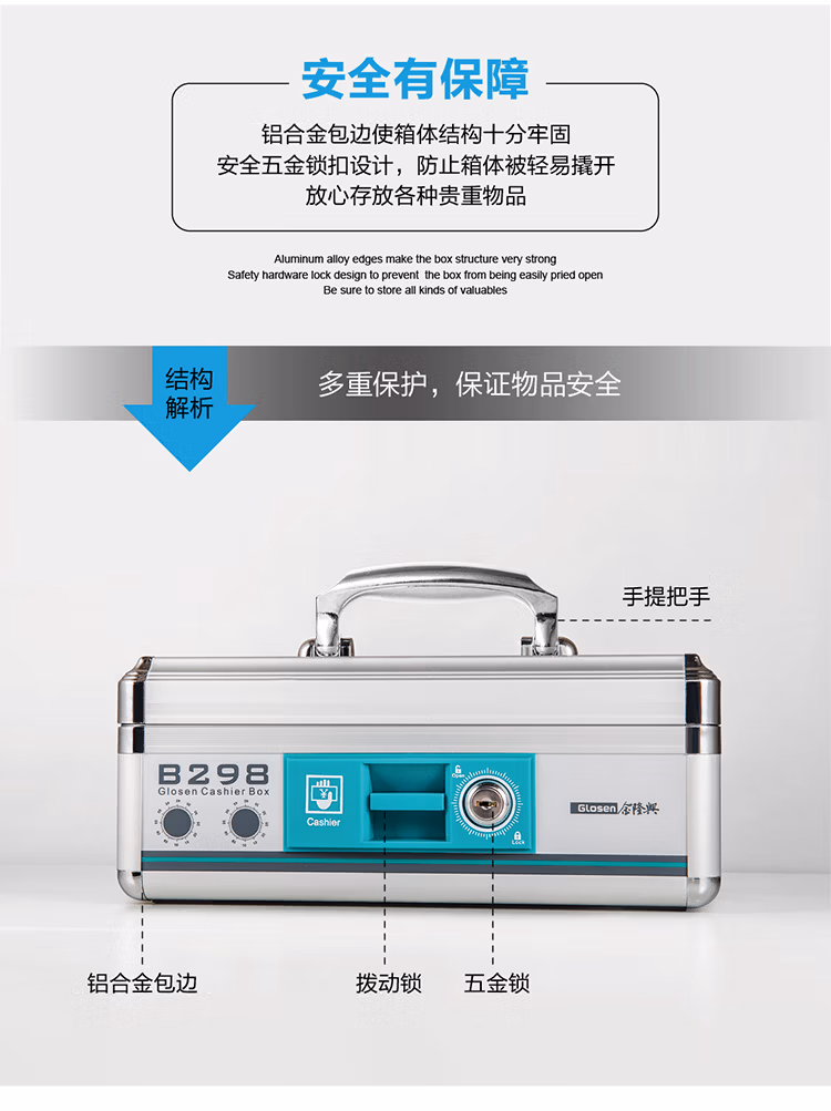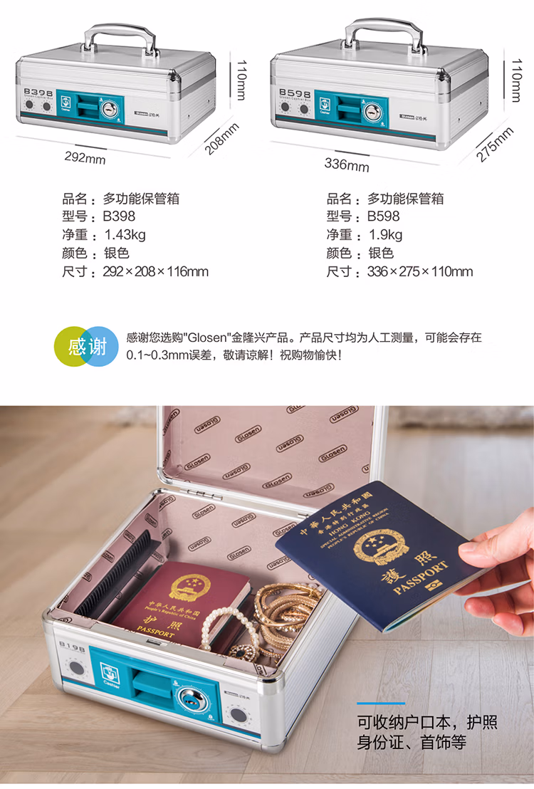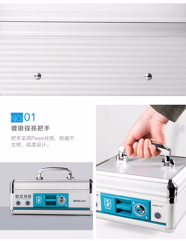 金隆兴 (Glosen) B598 336*275*110mm 超大号 带锁安全保密 铝合金 手提金库收银机一体 多功能保管箱 (计价单位:个) 银色
