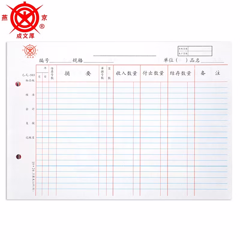 成文厚 乙式503 物品分类帐 库存数量帐 (计价单位:本)