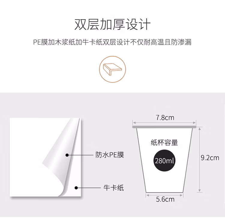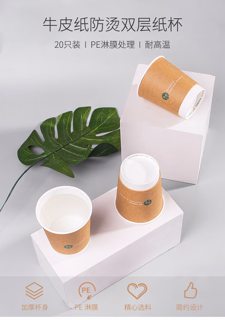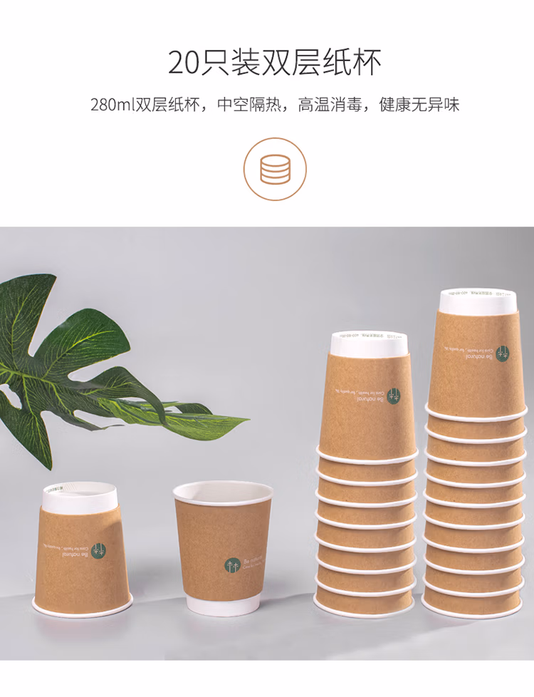 得力(deli) 19204 280ml 双层纸杯 一次性纸杯 20.00 个/包 (计价单位:包) 棕色