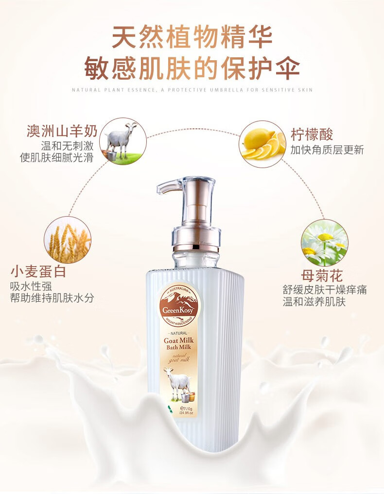 绿色溪谷沐浴露液润肤女男精油保湿护肤长久留香补水嫩肤香体网红greenkosy 【澳洲山羊奶告别干燥肌】山羊奶丝滑沐浴乳700g