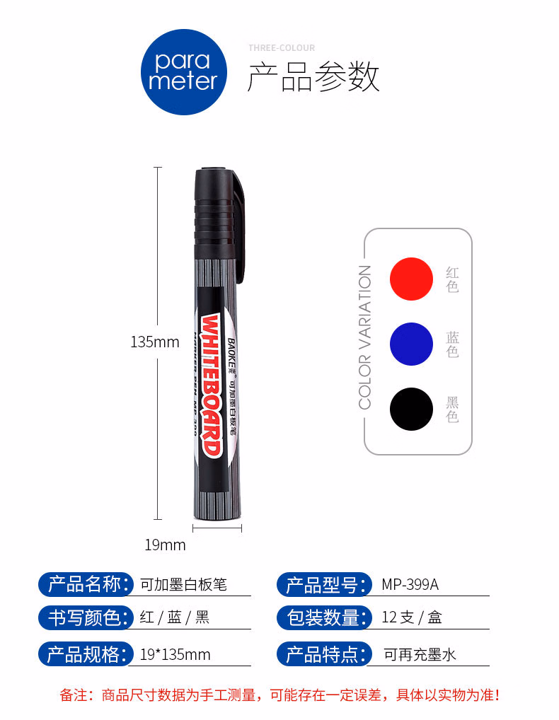 宝克(BAOKE) MP399A 红色 可加墨白板笔 (计价单位:支) 红色