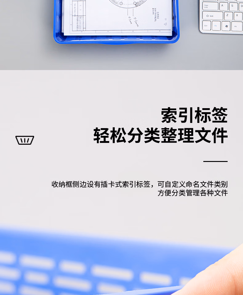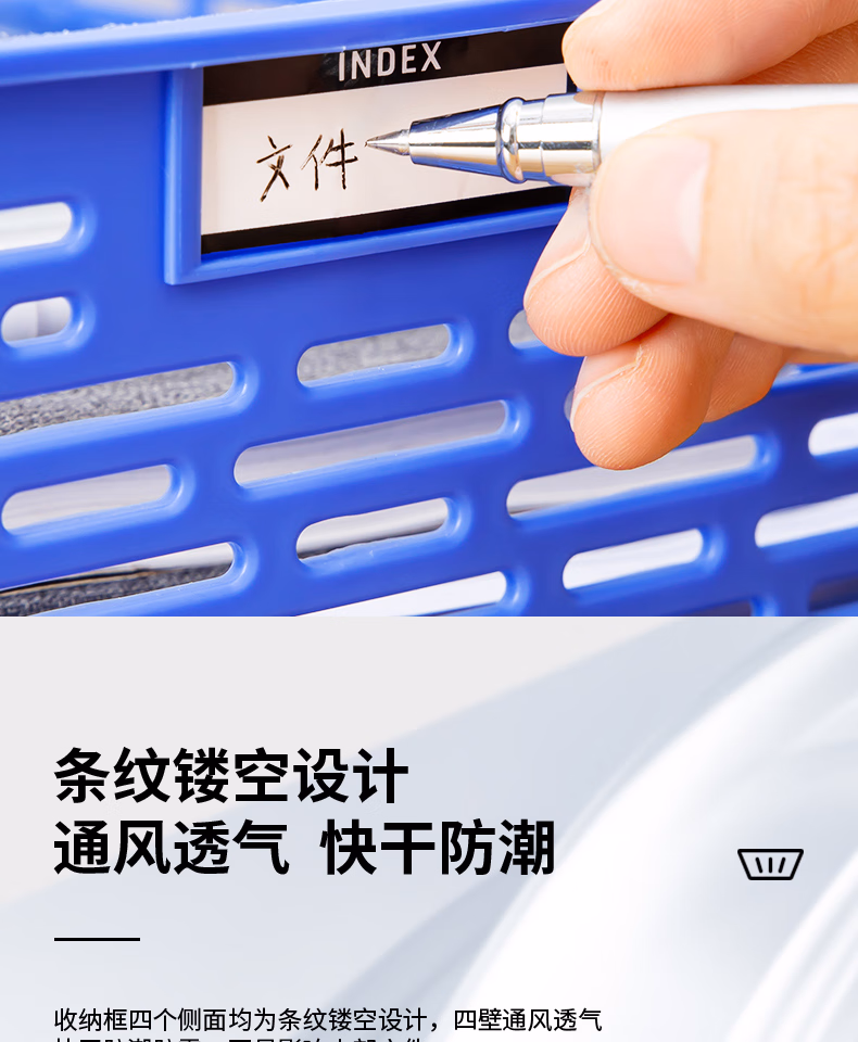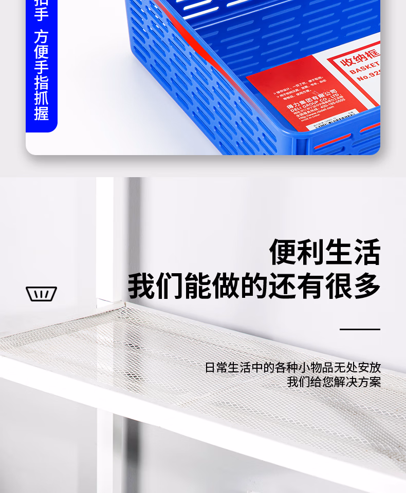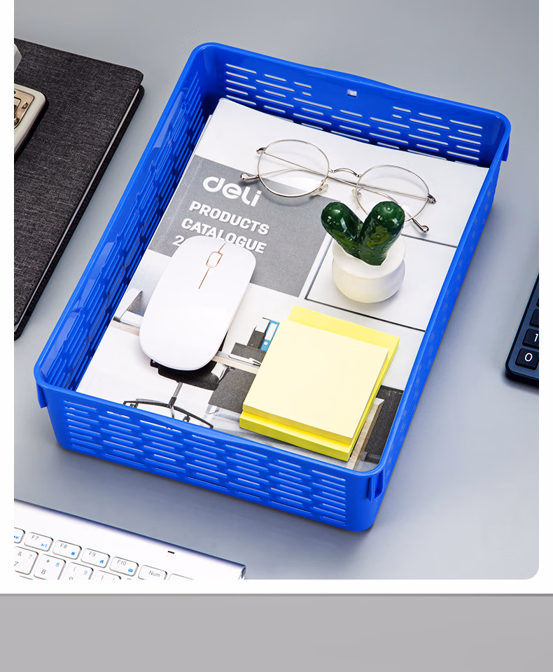 • 商品名称:得力(deli)文件篮/公文篮/票据篮文件筐文件架文件栏收纳盒 镂空网材文件桌面收纳 办公用品 无盖蓝色 324*240*85mm-929