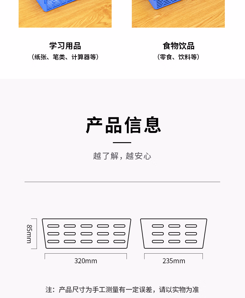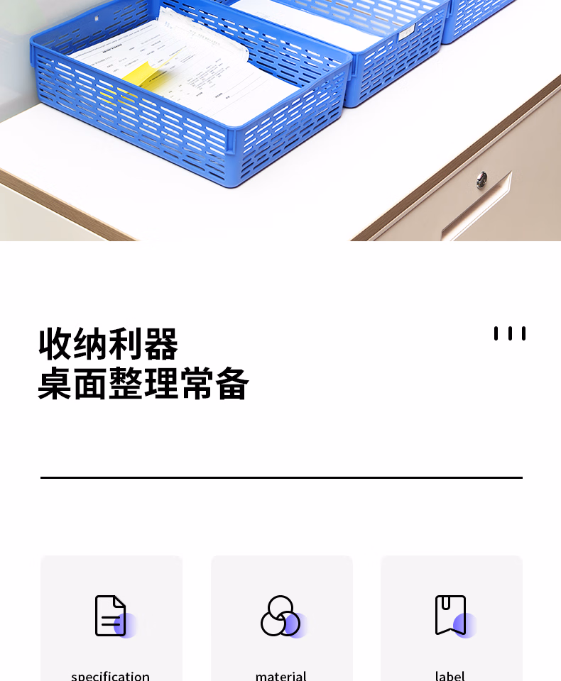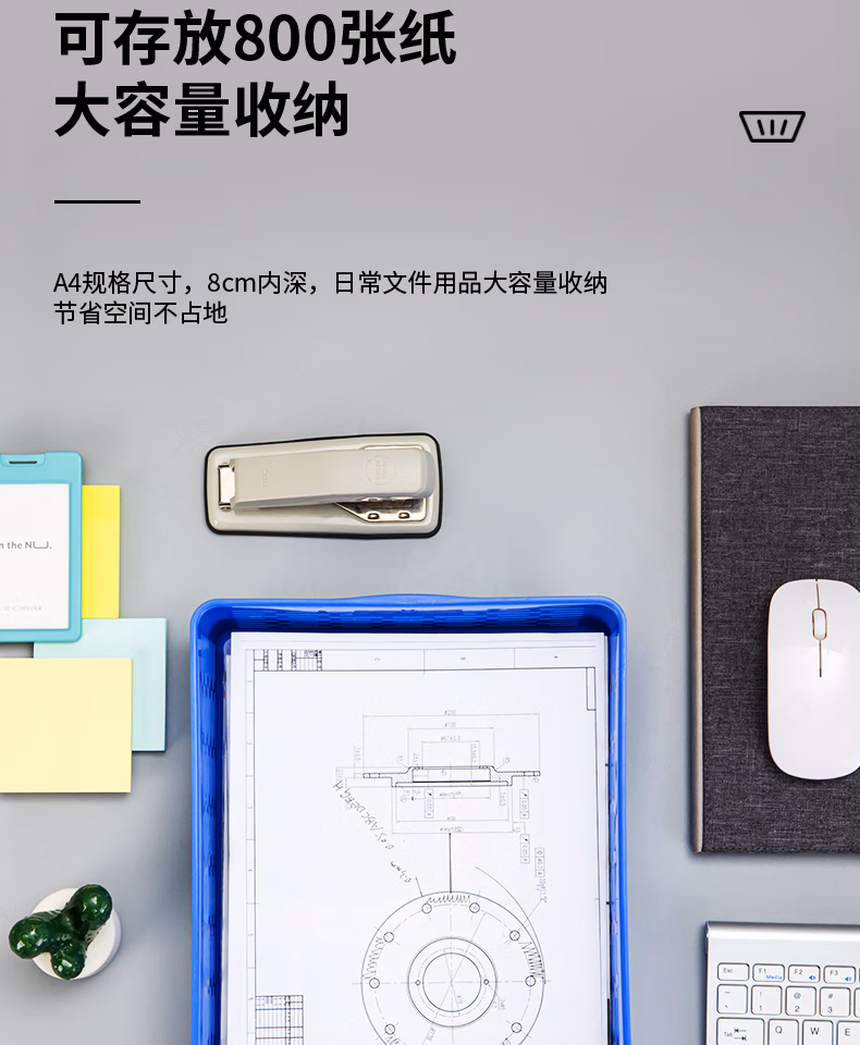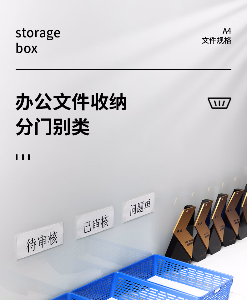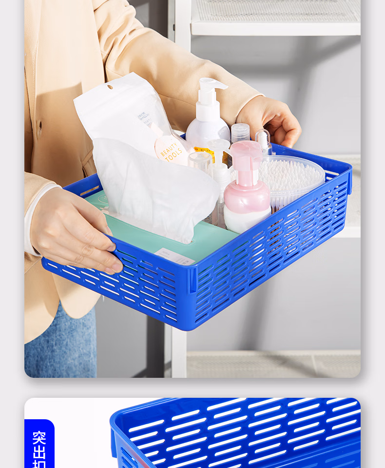 • 商品名称:得力(deli)文件篮/公文篮/票据篮文件筐文件架文件栏收纳盒 镂空网材文件桌面收纳 办公用品 无盖蓝色 324*240*85mm-929