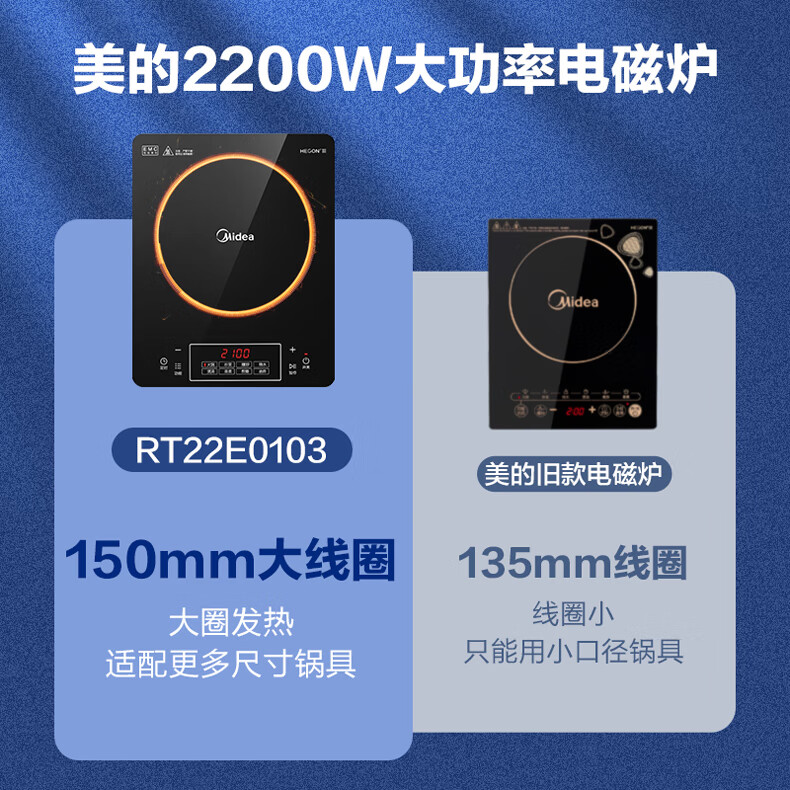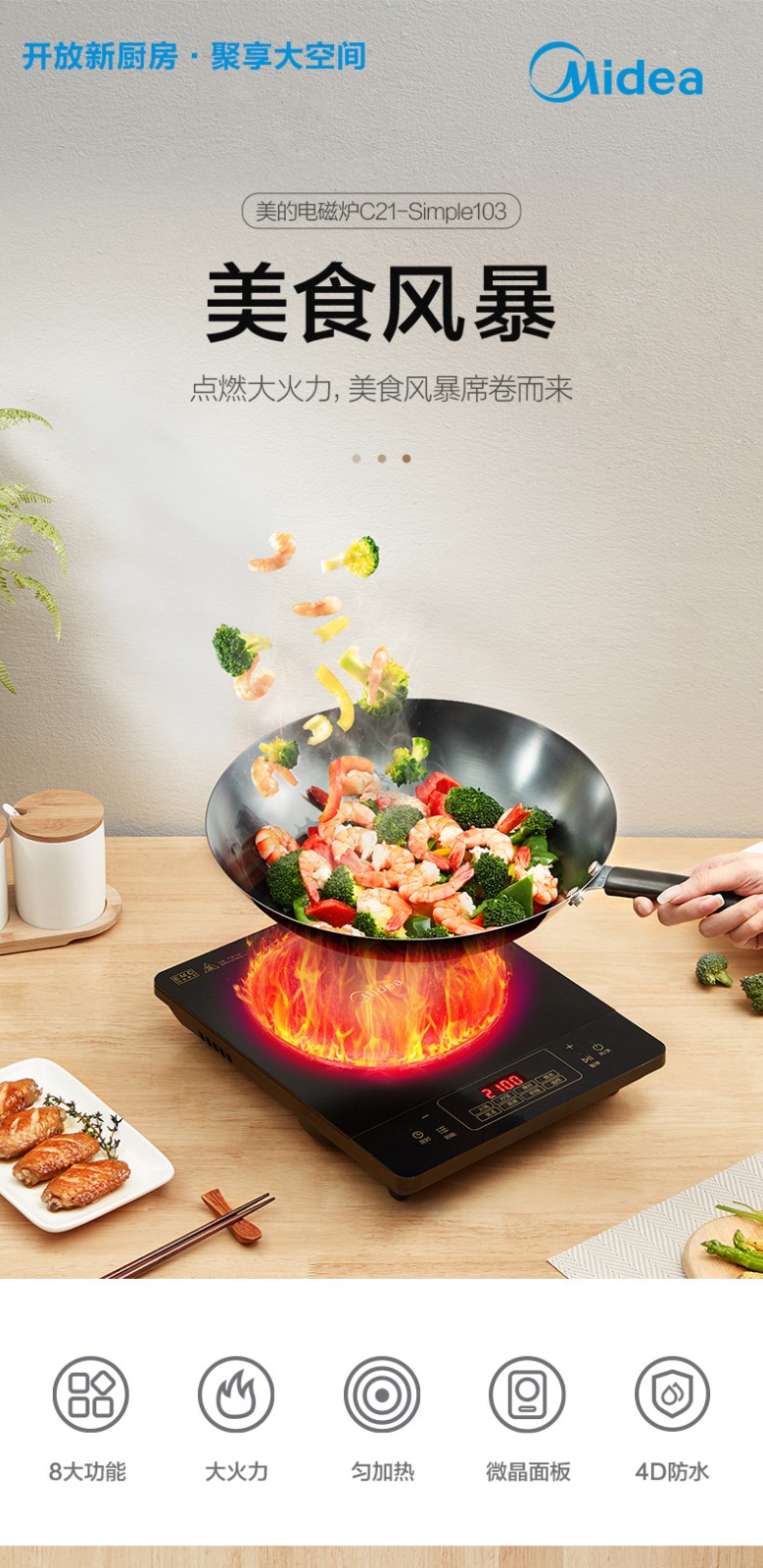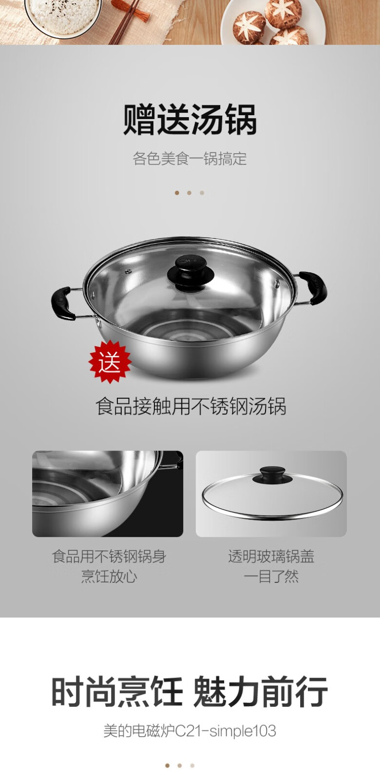 美的(Midea) 电磁炉带锅套装 家用大功率 电磁灶电火锅一体 柴火灶电磁灶电池炉2200W大火力 【配品质汤锅】 C21-Simple103