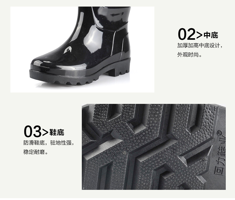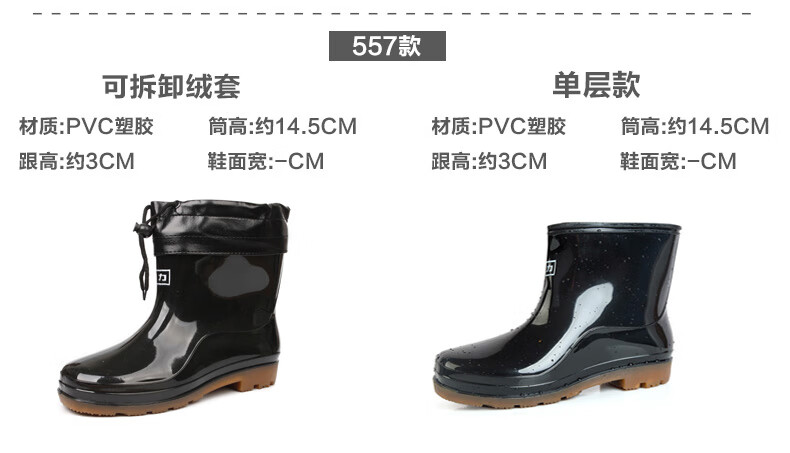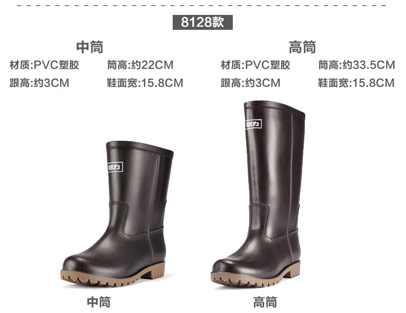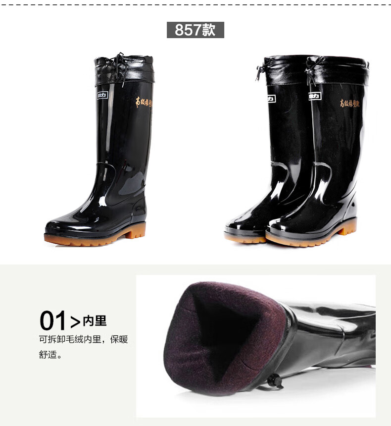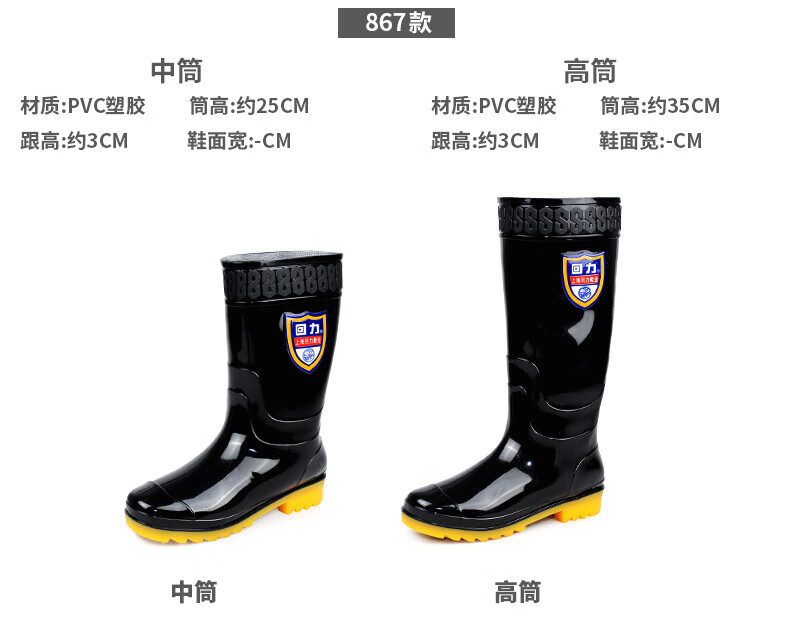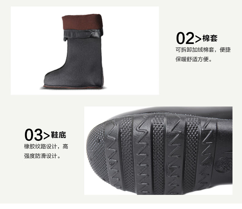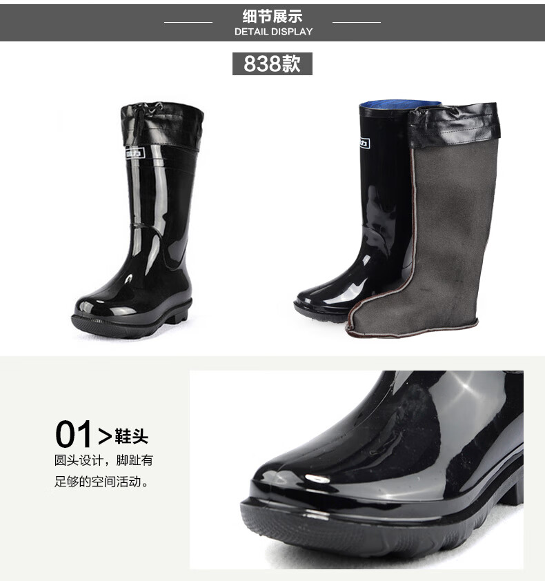 回力 雨鞋男 单层 加绒保暖雨靴男冬季水鞋胶鞋 牛筋底防滑 内胆可拆卸套鞋 838中筒单层(偏大一码) 39 单位:双