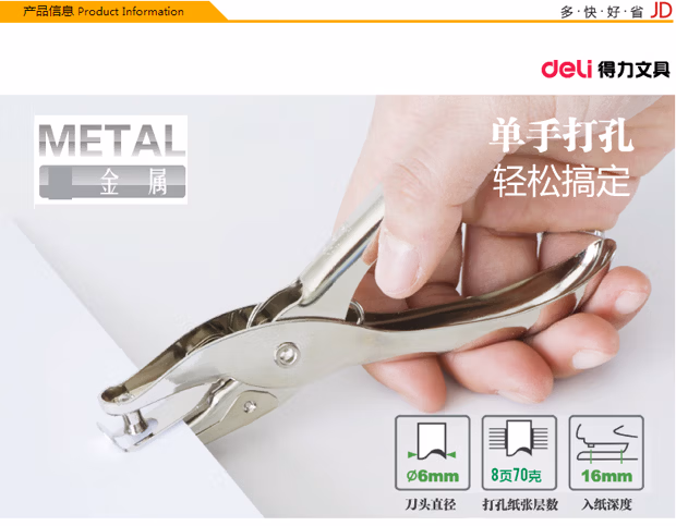 得力(deli) 0114 单孔 打孔器 1.00 支/个 (计价单位:个) 银色