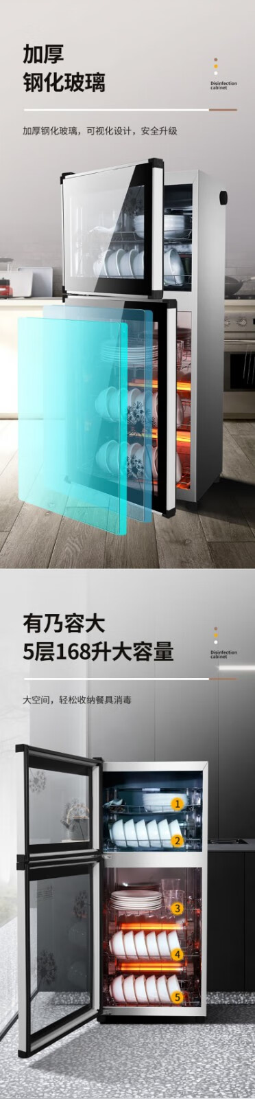 晟泰邦 消毒柜立式消毒碗柜官方新款大容量餐具双门 升级款168升-上下分控-+接水盘+高温红外线消毒 单位:台