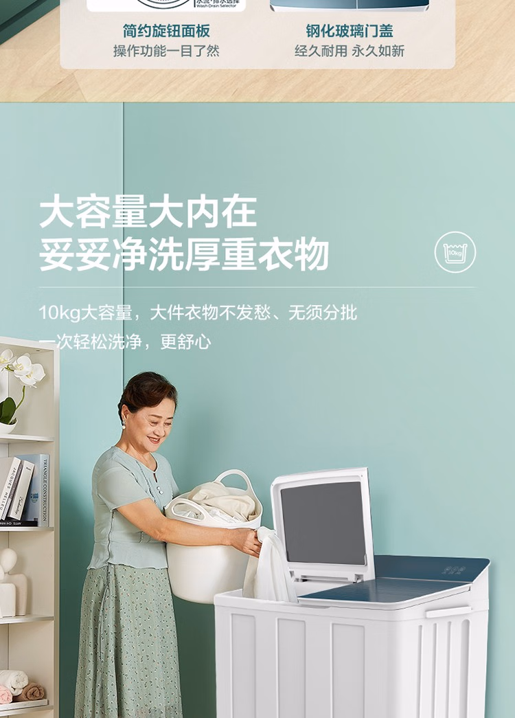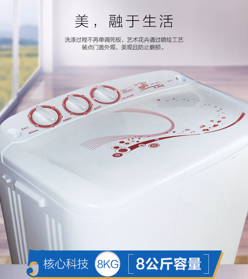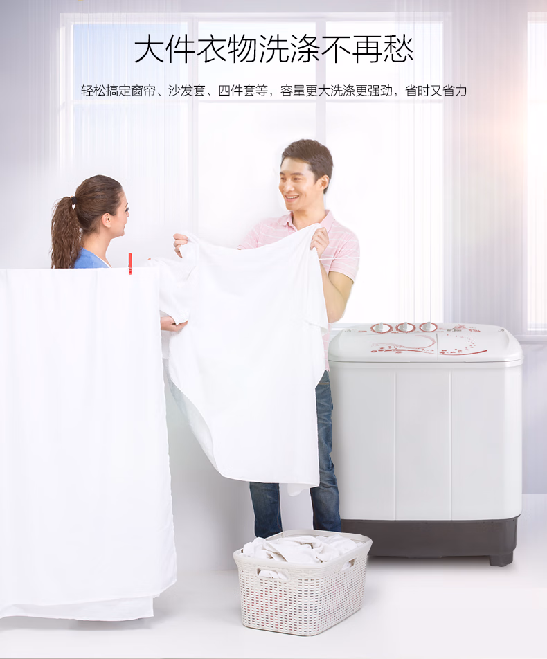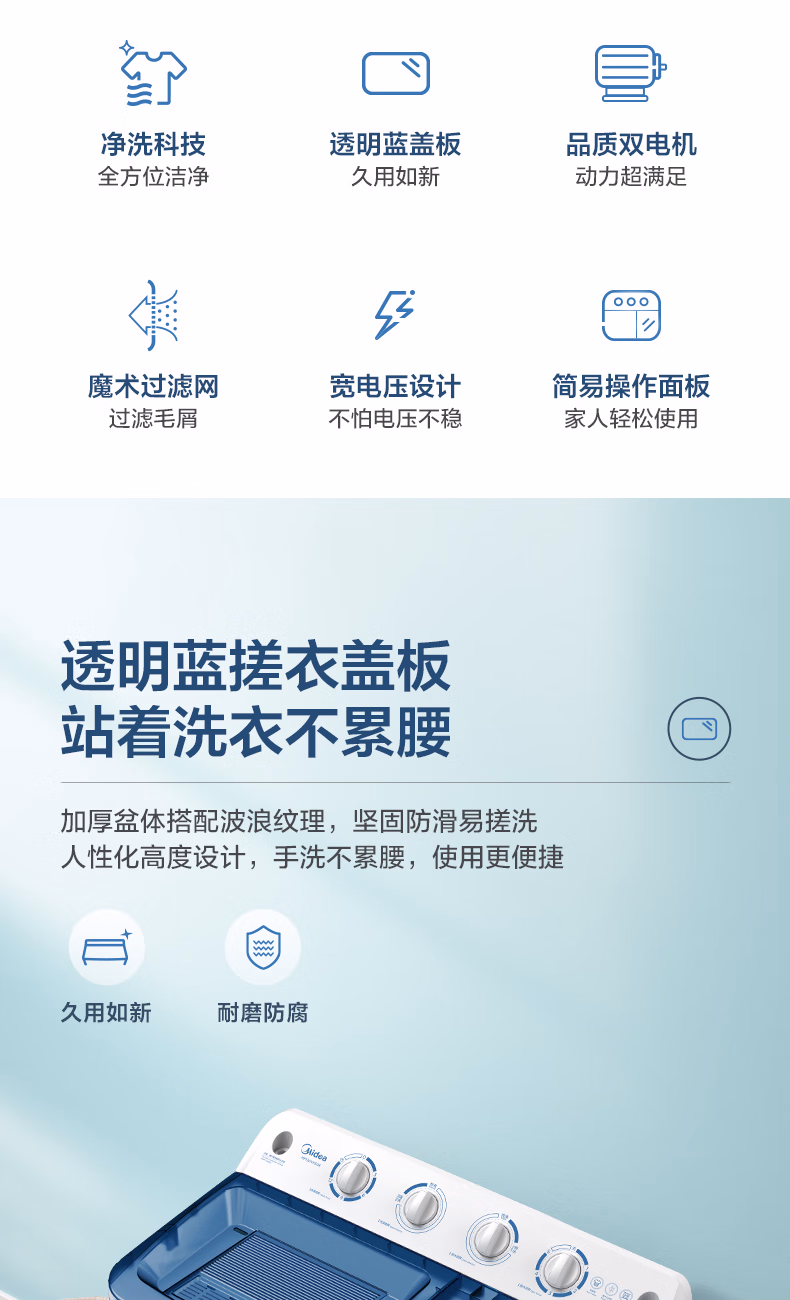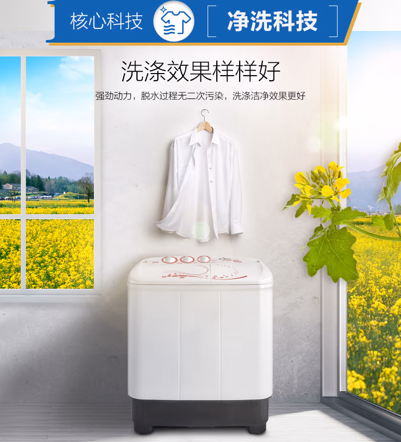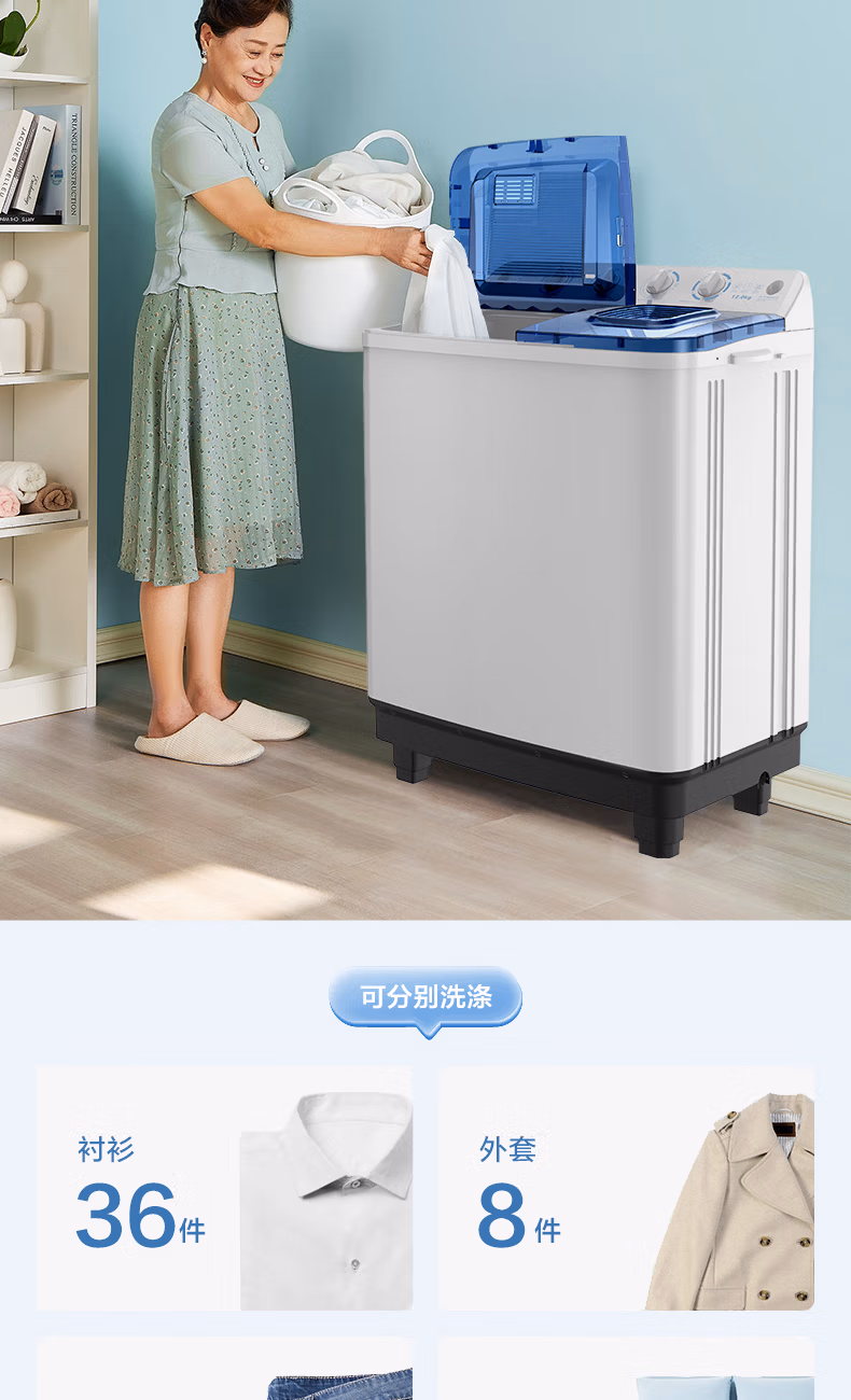 美的(Midea)洗衣机双缸双桶半自动 家用大容量 洗脱分离品质电机强劲动力省水省电以旧换新 【12公斤大容量强动力】MP120VK50E