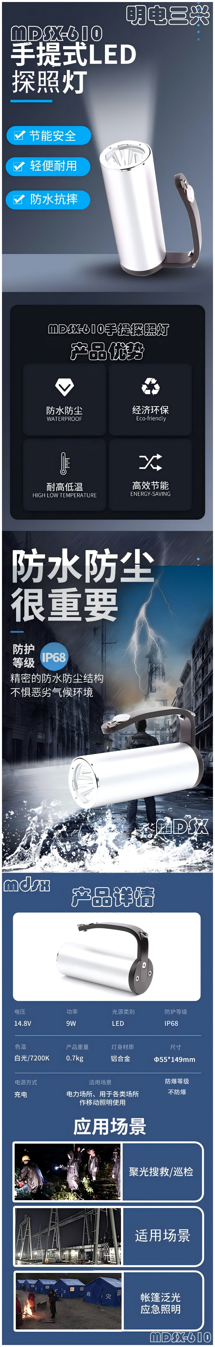 明电三兴 MDSX-610 14.8V 9W IP68 7200K LED 手提式探照灯 1.00 盏/个 (计价单位:个) 银白色