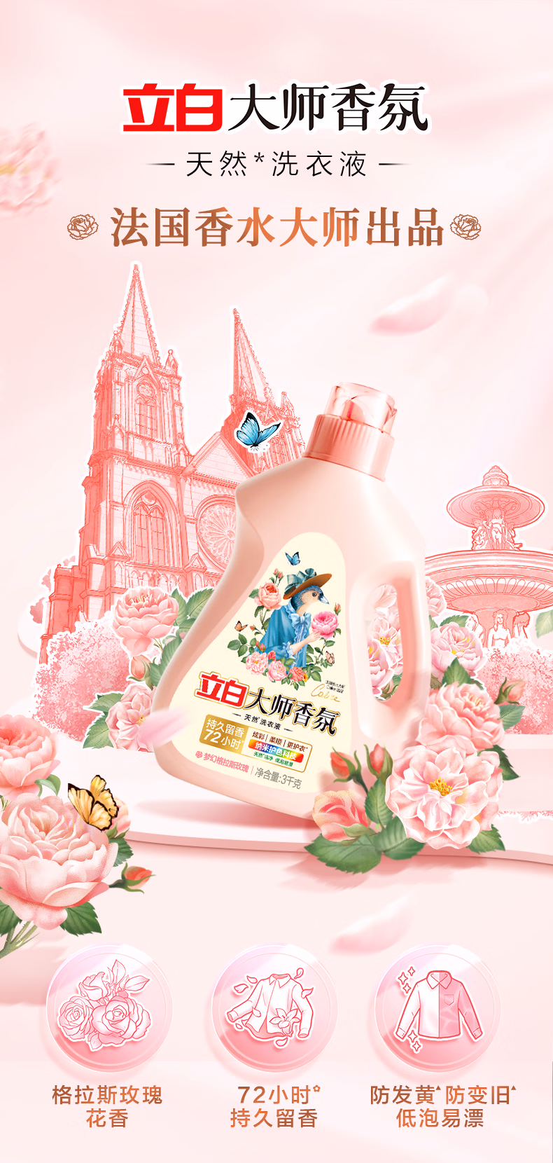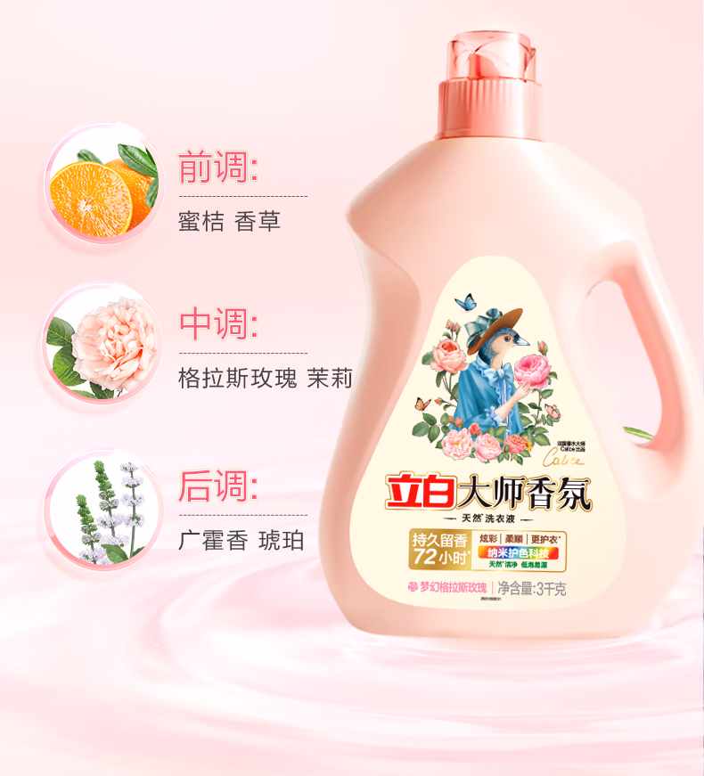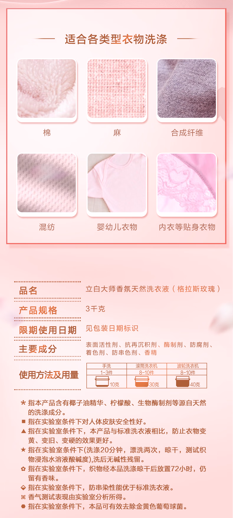 立白(liby) 3kg格拉斯玫瑰大师香氛 洗衣液 (计价单位:瓶) 粉色