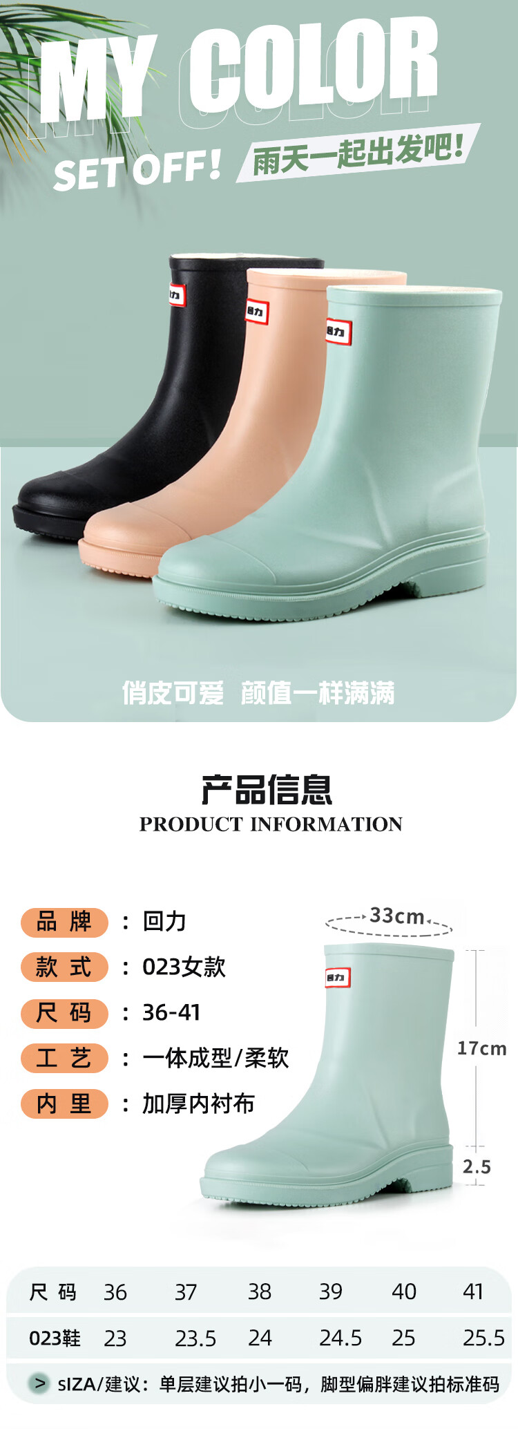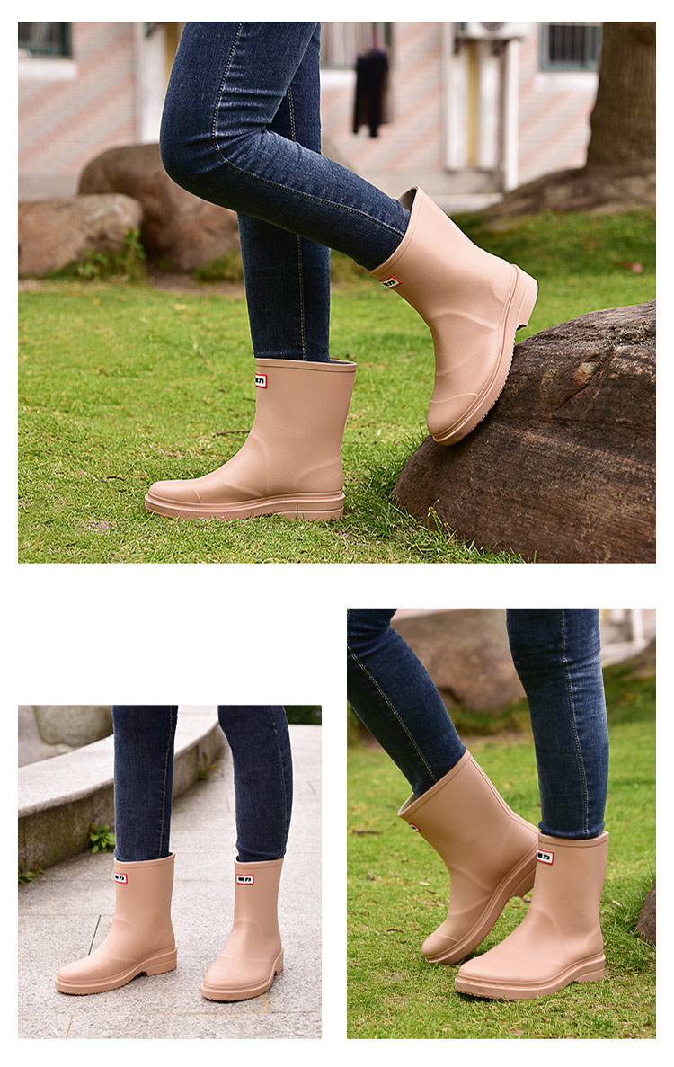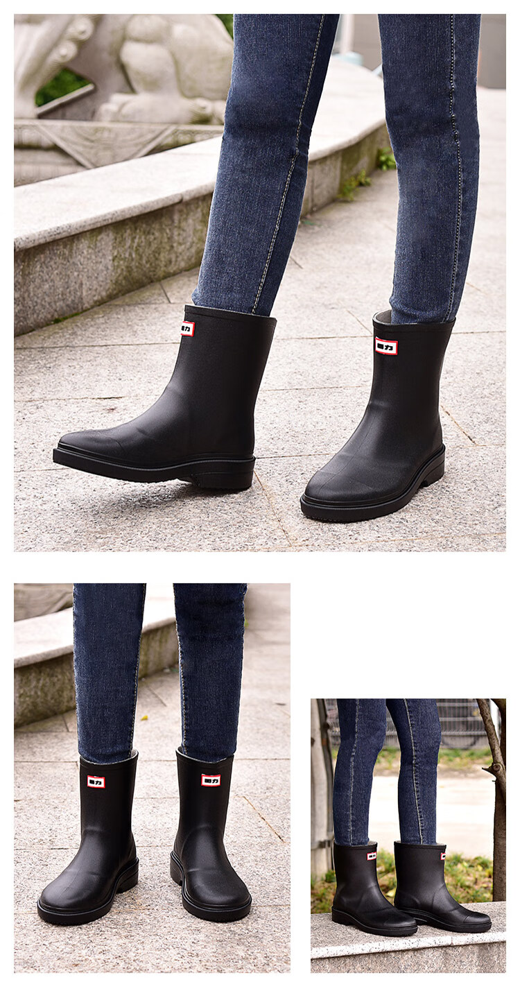回力雨鞋女式款时尚雨靴户外下雨天防水不易滑水鞋耐磨胶鞋水靴 HXL023 黑色 (36-41码可选)
