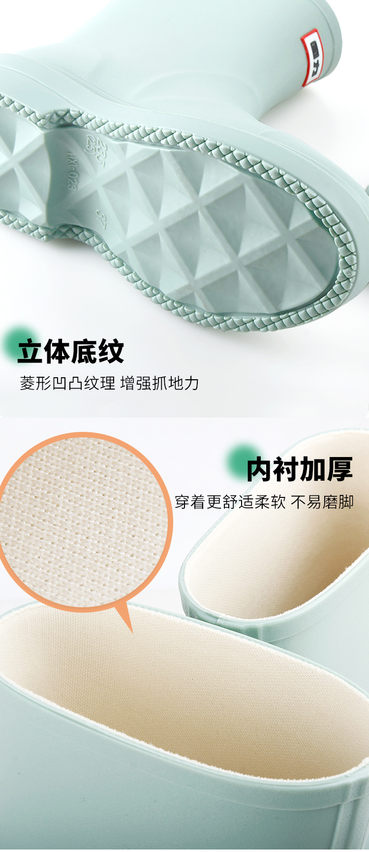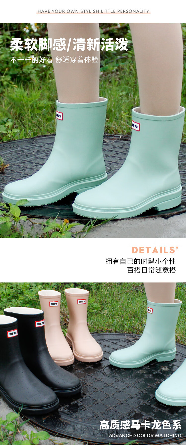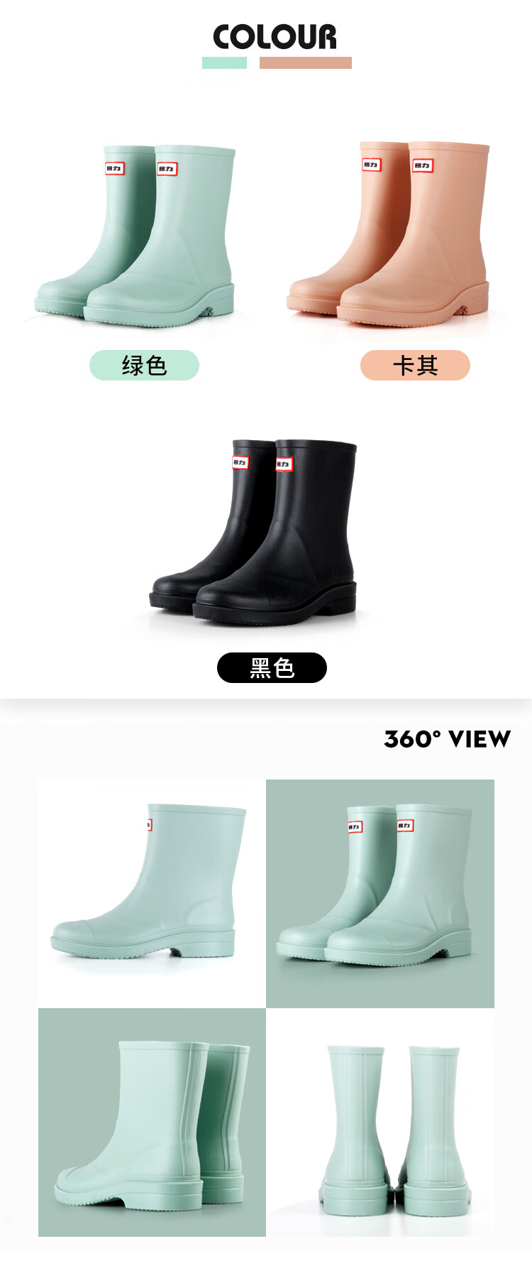 回力雨鞋女式款时尚雨靴户外下雨天防水不易滑水鞋耐磨胶鞋水靴 HXL023 黑色 (36-41码可选)
