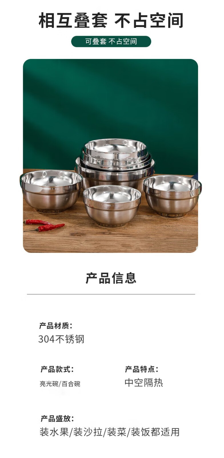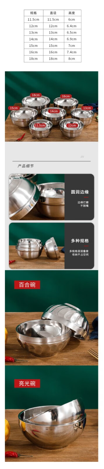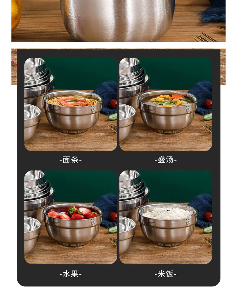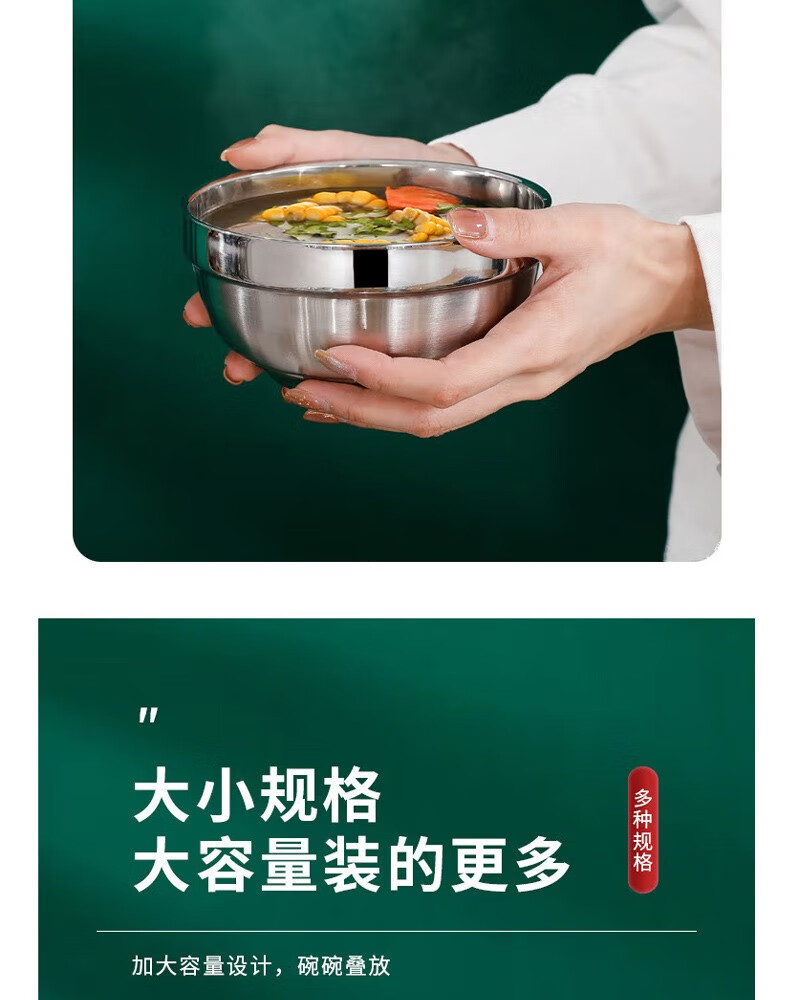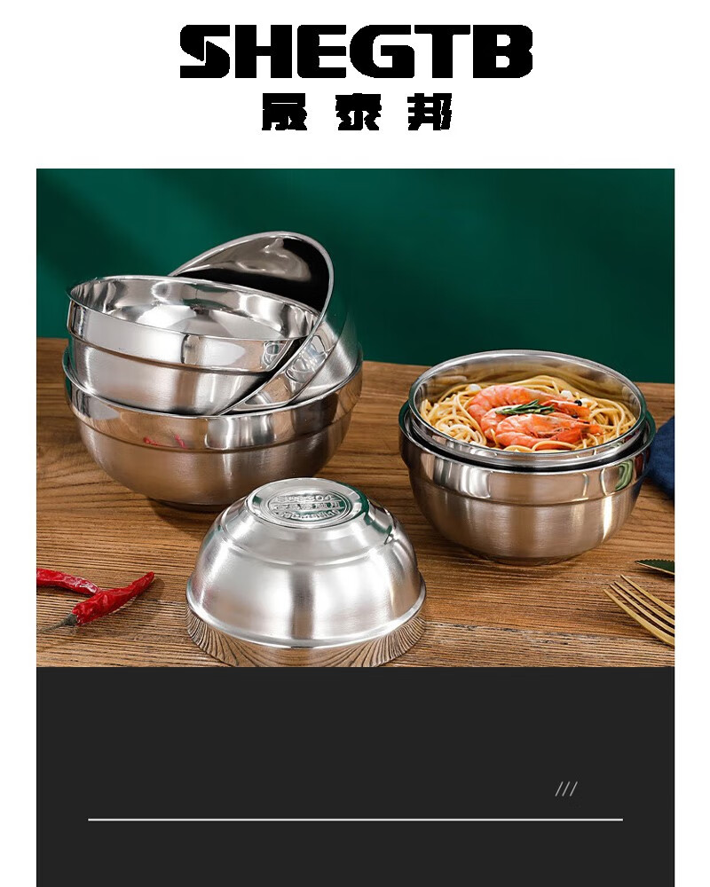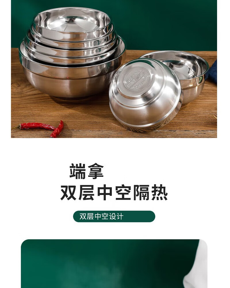 晟泰邦 304不锈钢双层隔热铂金碗 学校食堂饭碗汤碗加厚百合碗亮光碗 14cm 30个起订