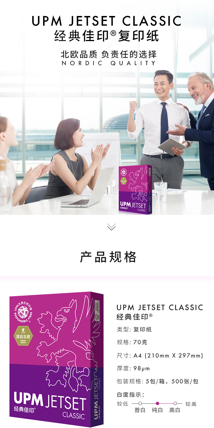 UPM 经典佳印 纯白复印纸/打印纸 A3 70克 500张/包 5包装2500张 单位:箱