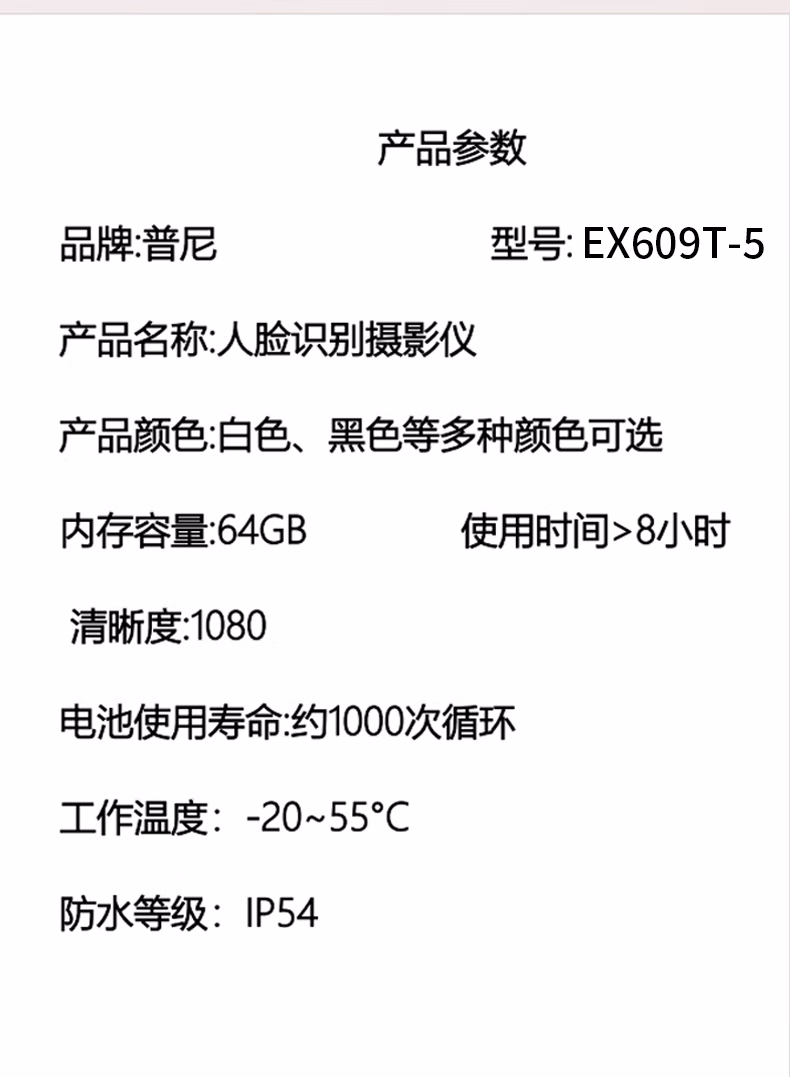 普尼(PONY) EX609T-5 人脸识别摄像仪 (计价单位:台) 黑色