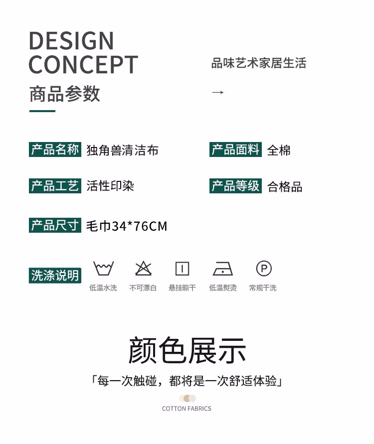 弗切尔珀榕 FBH0220644 34*76cm 独角兽全棉清洁毛巾抹布两用 (计价单位:块) 蓝色