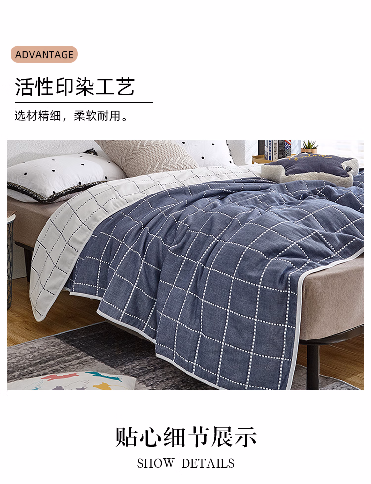伊伊爱 TZ0BH02200143 /120*150cm 全棉六层纱布毛巾毯 1.00 件/条 (计价单位:条) 格子蓝