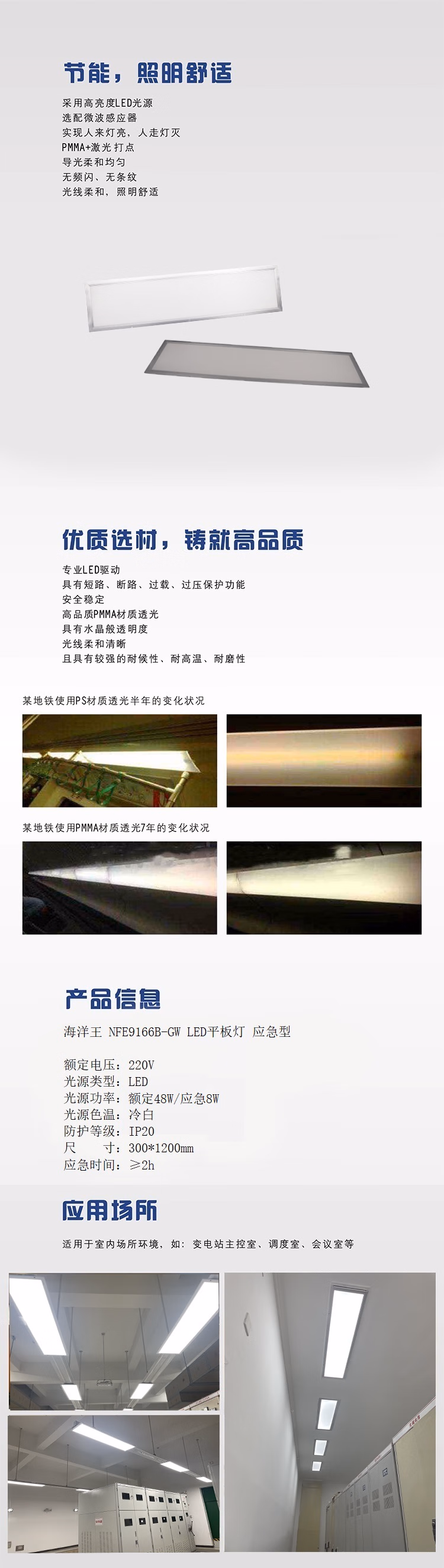 海洋王 NFE9166B-GW 应急型 300*1200mm 48W/8W IP20 应急时间≥2h 220V 冷白 LED平板灯 1.00 台/个 (计价单位:个) 银色