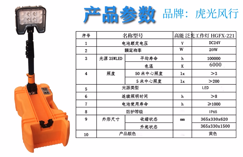 虎光风行 HGFX-221 20W IP65 DC24V 6000K LED 高能 泛光工作灯 1.00 台/个 (计价单位:个) 黄色