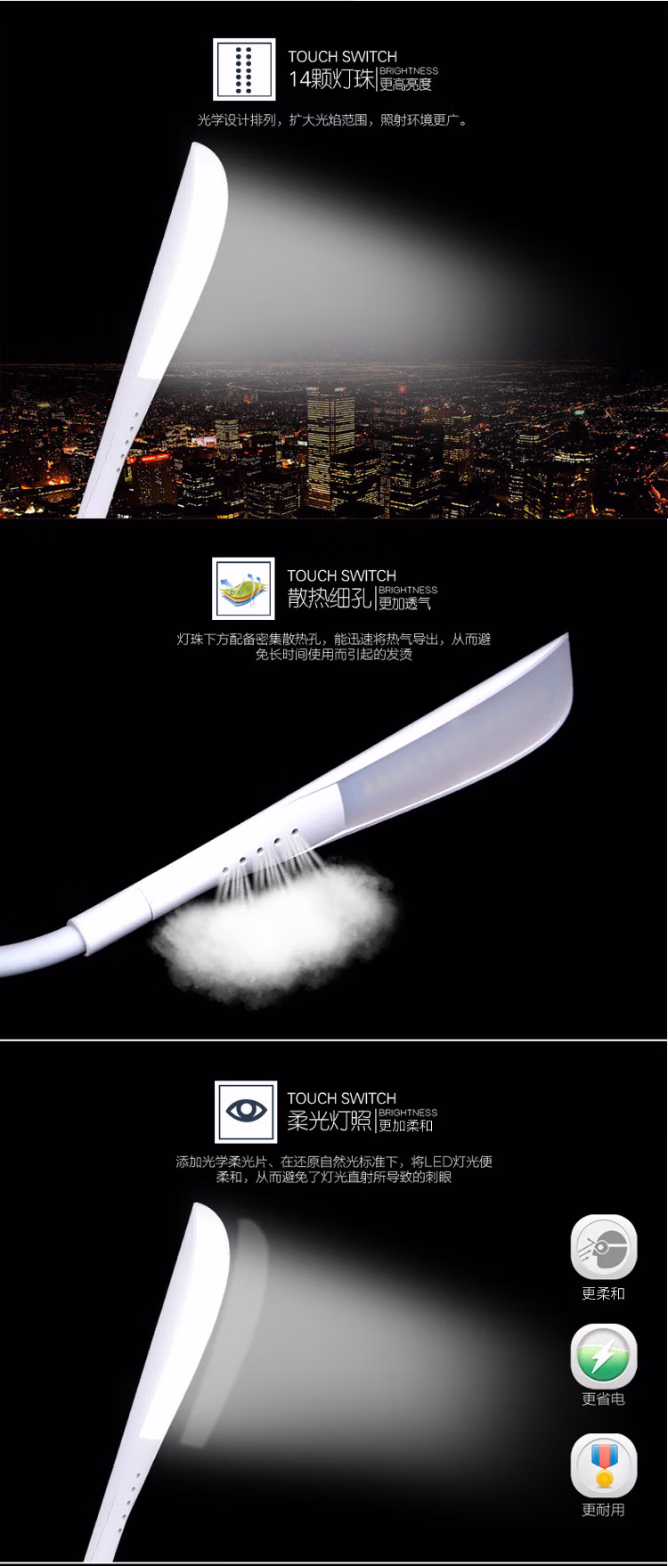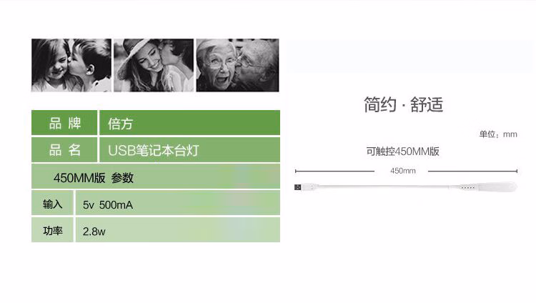 倍方 USB笔记本电脑灯 增强版 白色开关可触 办公用台灯 1.00 台/个 (计价单位:个) 白色