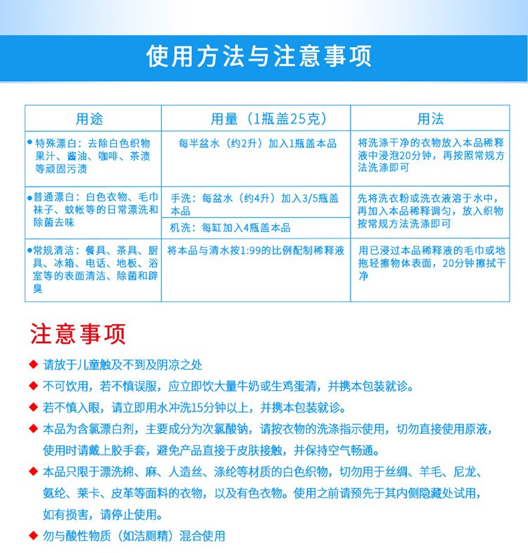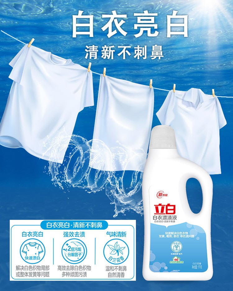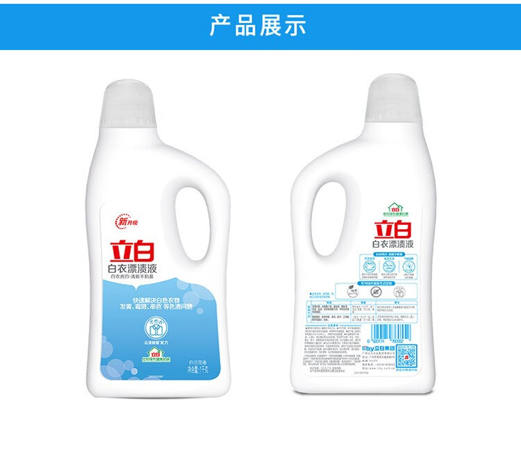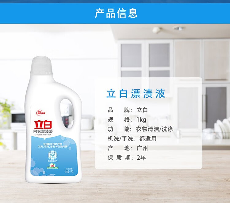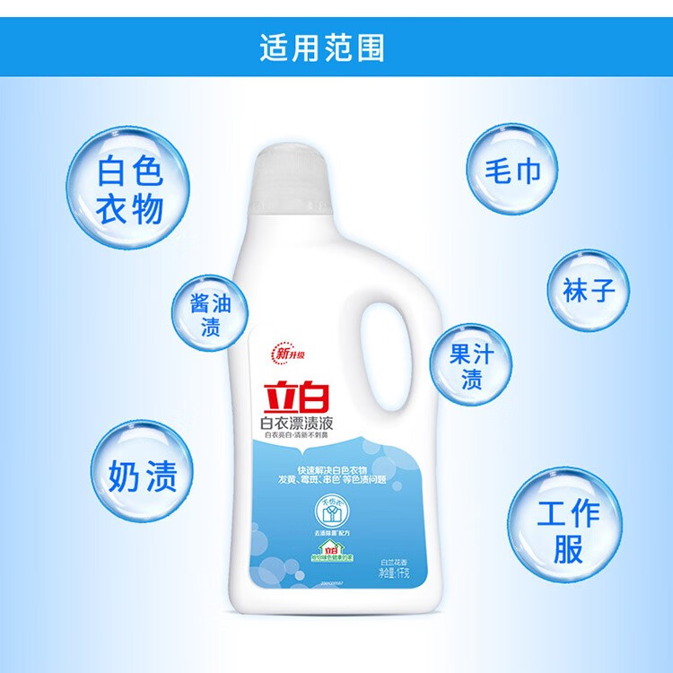 立白 漂渍液1kg 白衣去渍 衣物除菌消毒液 与洗衣液搭配使用 含次氯酸钠(单位:瓶)起订量:12瓶/箱