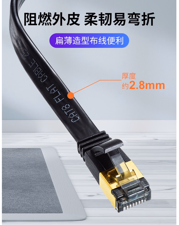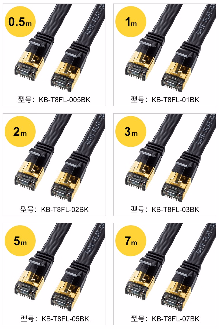山业(SANWA) KB-T8FL-05BK 8类扁平 5M 网线 5.00 米/根 (计价单位:根) 黑色