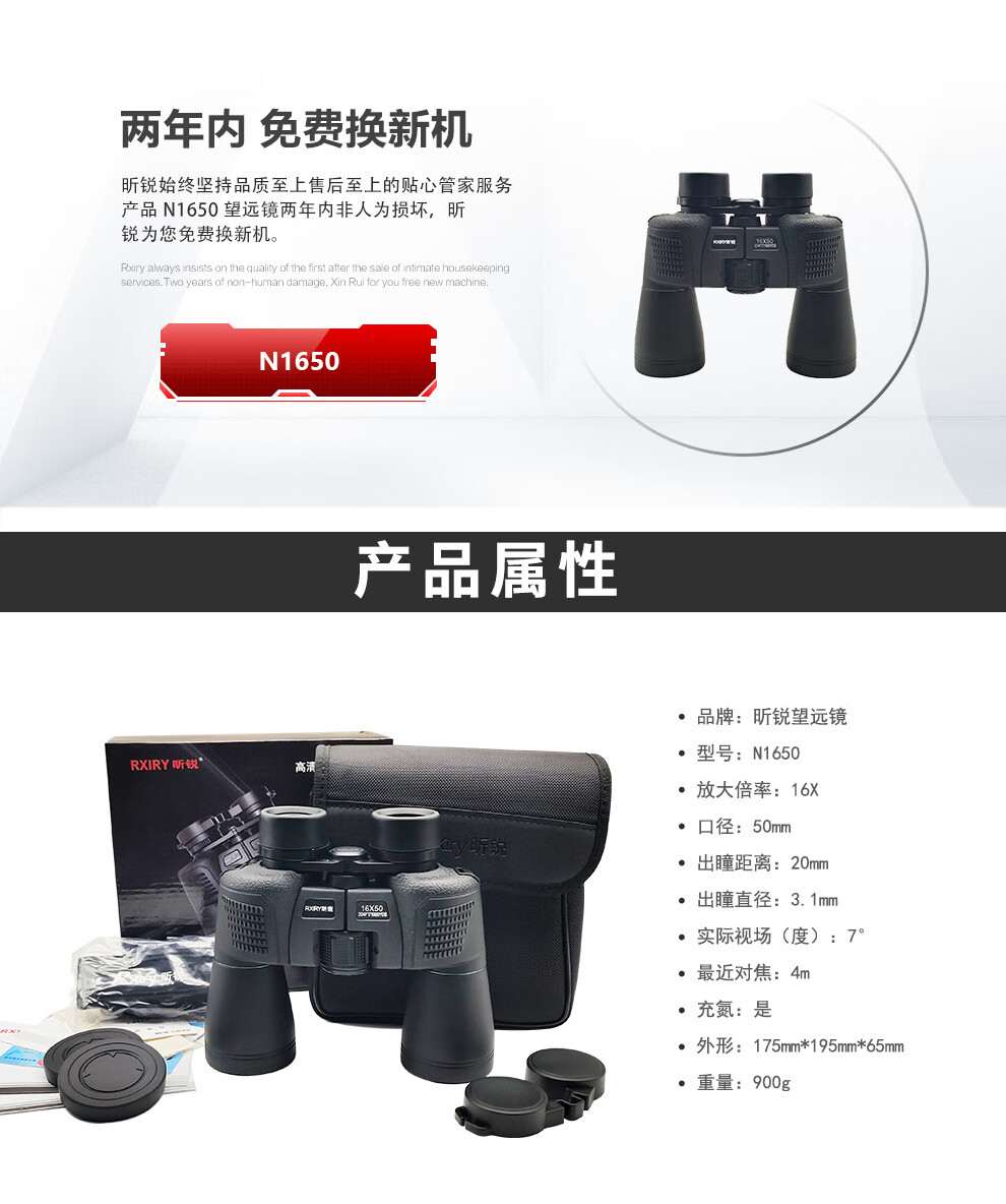 昕锐(Rxiry) 双筒望远镜户外防水高清高倍便携望远镜N1650