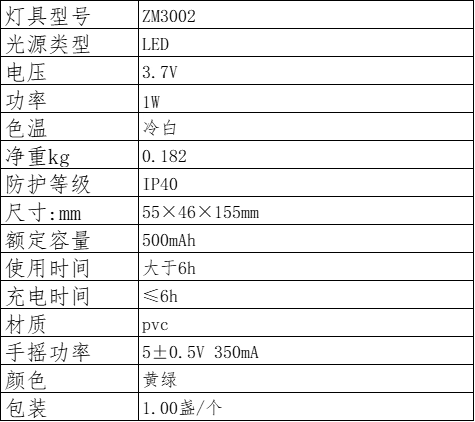 晫安联 ZM3002 3.7V 1W IP40 续航时间大于6h LED 冷白 应急灯 1.00 盏/个 (计价单位:个) 黄绿