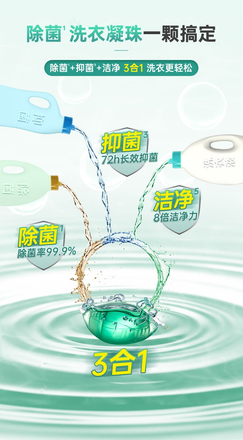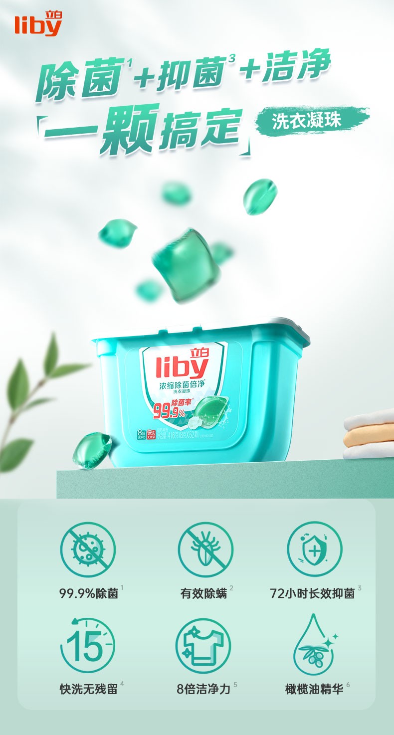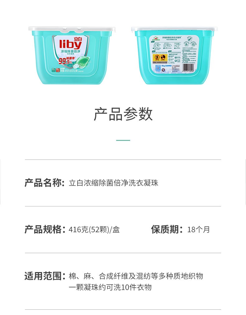 立白 天然倍净浓缩洗衣液除菌洁净去渍颗粒装浓缩洗衣液珠(薄盒)洗衣凝珠416g(8克x52颗)x1盒(单位:盒)