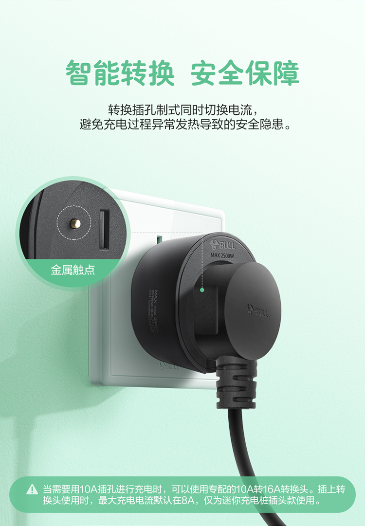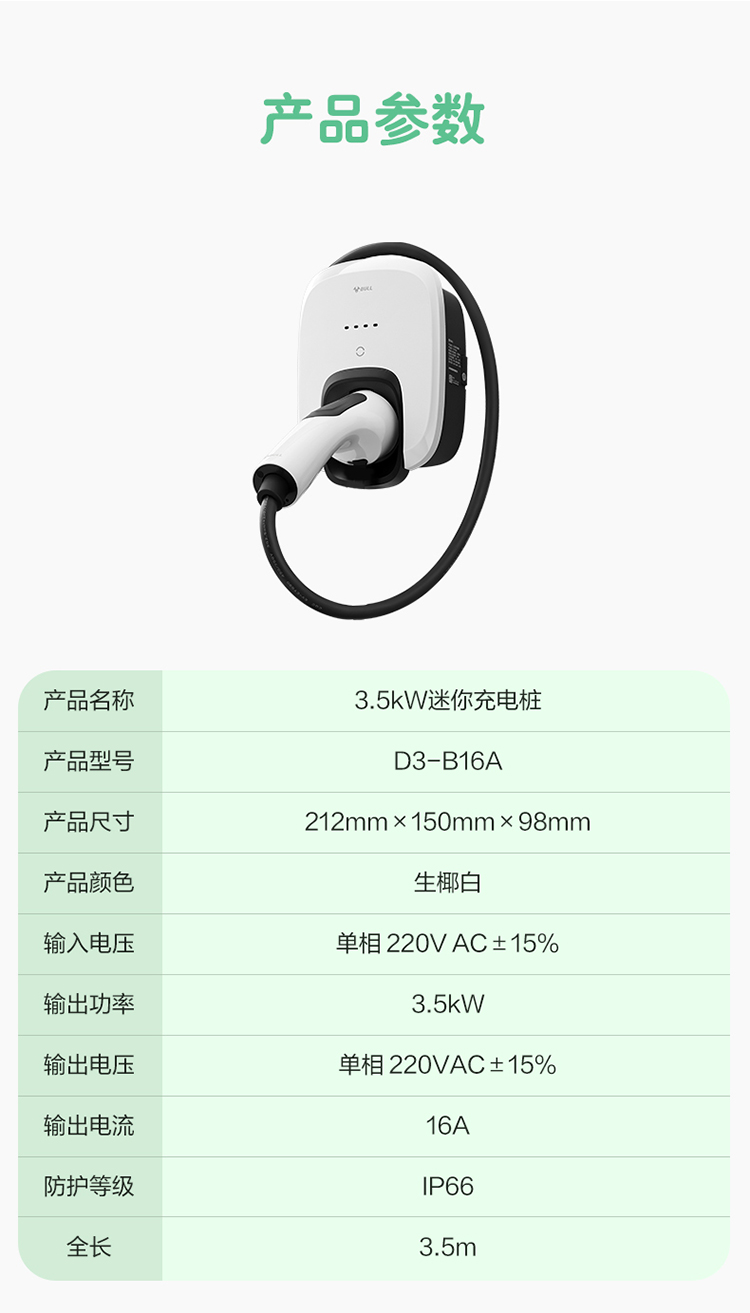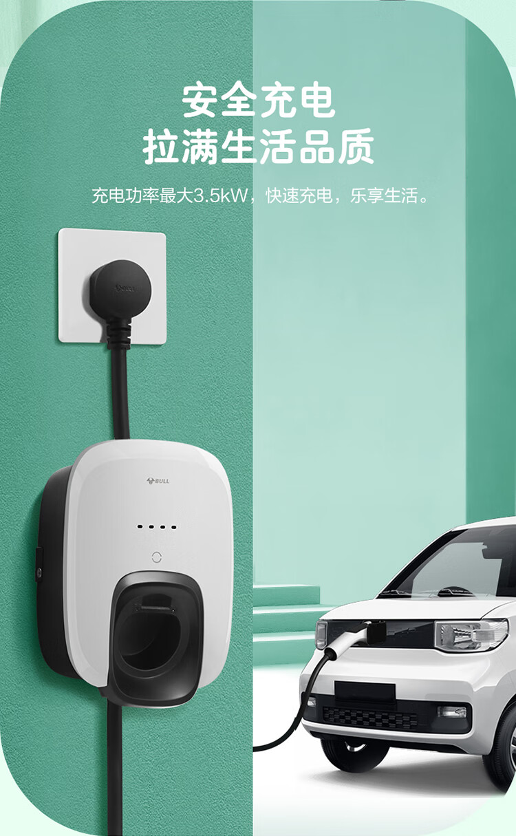公牛新能源汽车迷你充电桩【D3-B16A】定时预约充电 适用欧拉五菱宝骏奇瑞等车型 (3.5KW生椰白)