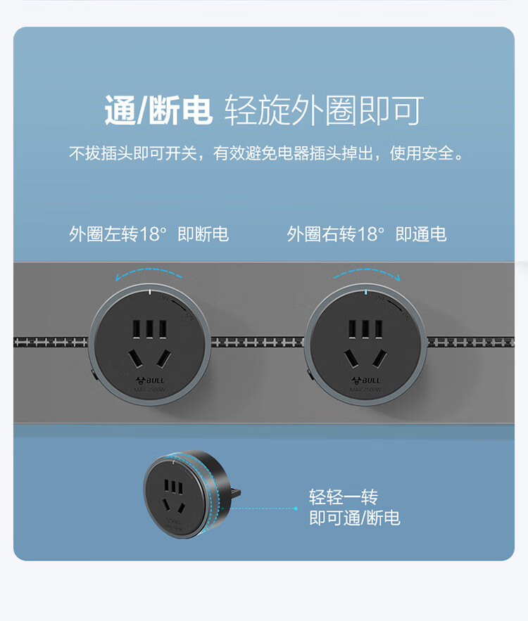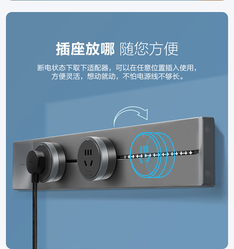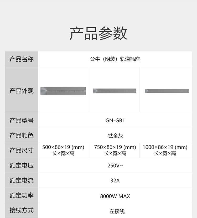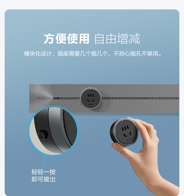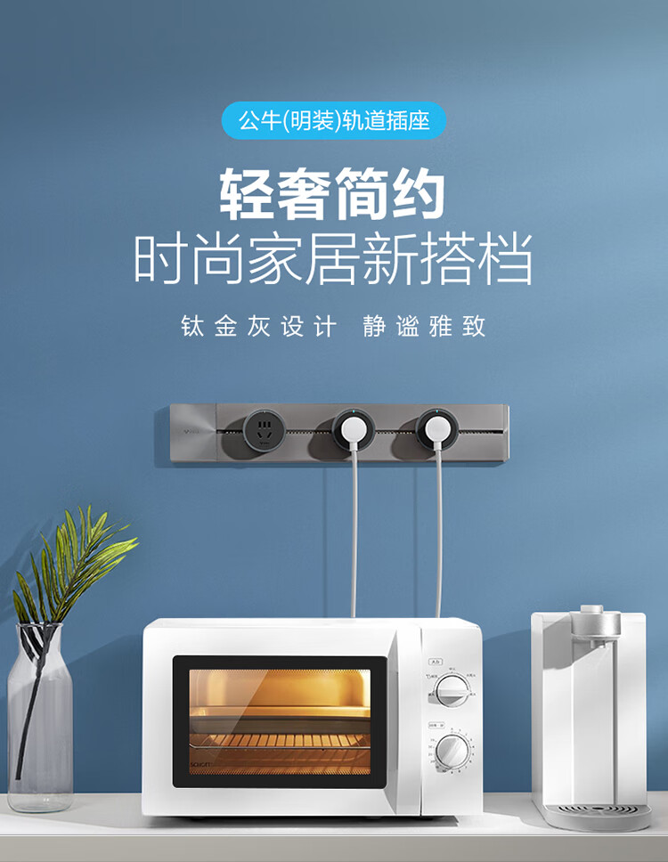 公牛(BULL)明装 轨道插座 可移动墙壁插座壁挂式/插线板/接线板 多功能免打孔 50厘米轨道+3个五孔插座灰色 单位:个